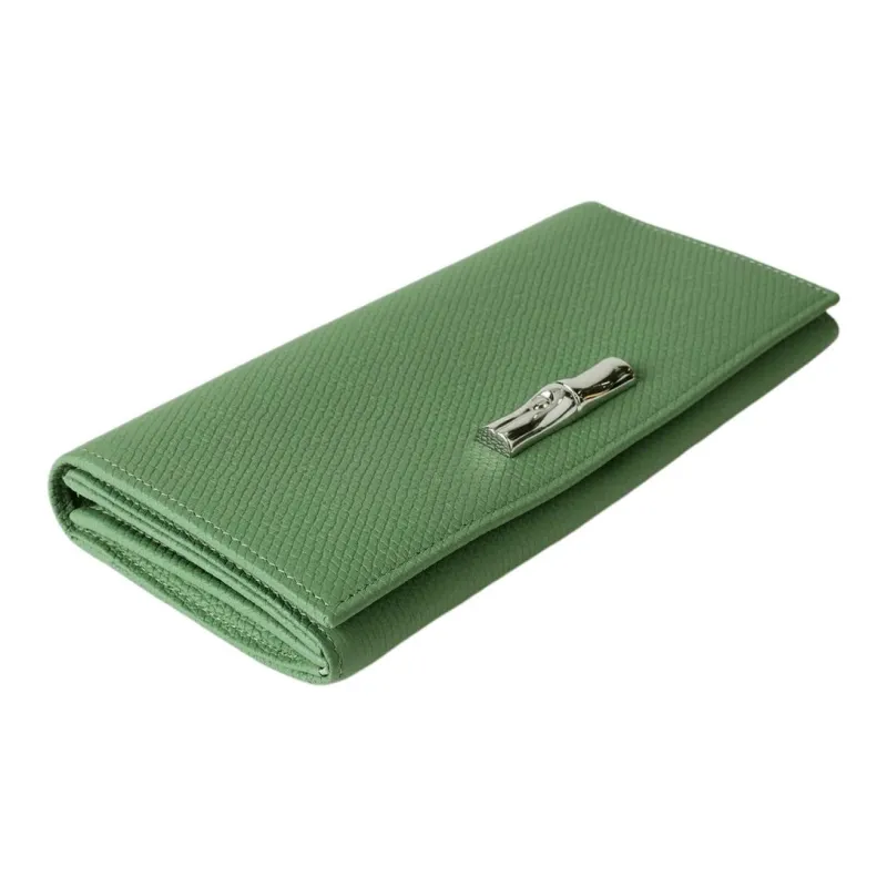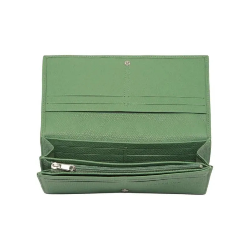 LONGCHAMP Le Roseau Коровья кожа крупнозернистая текстура кошелек женский мятно-зеленый