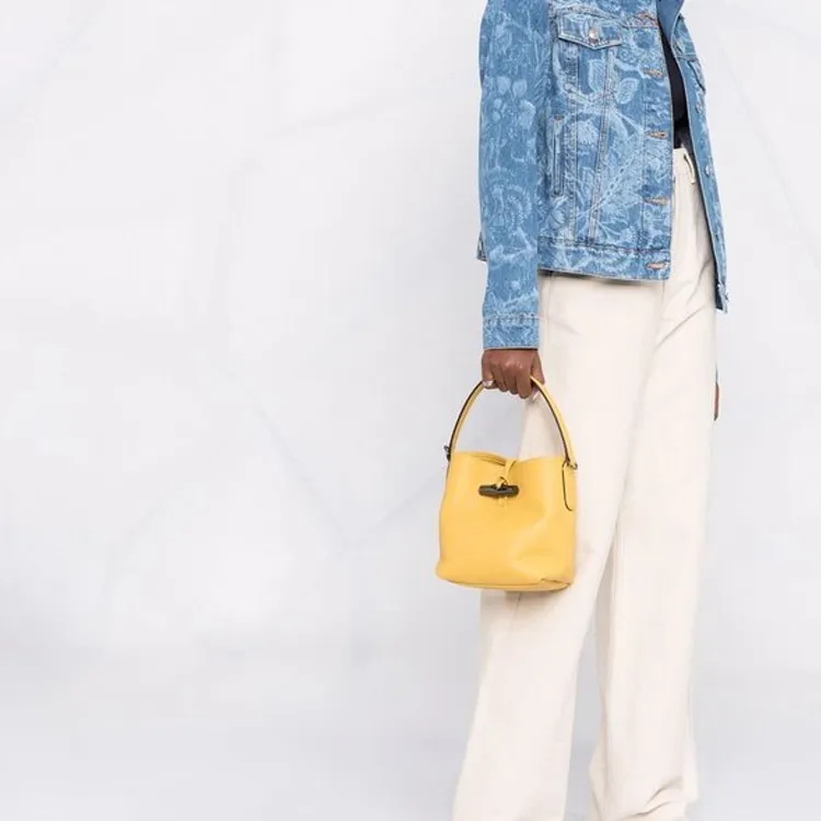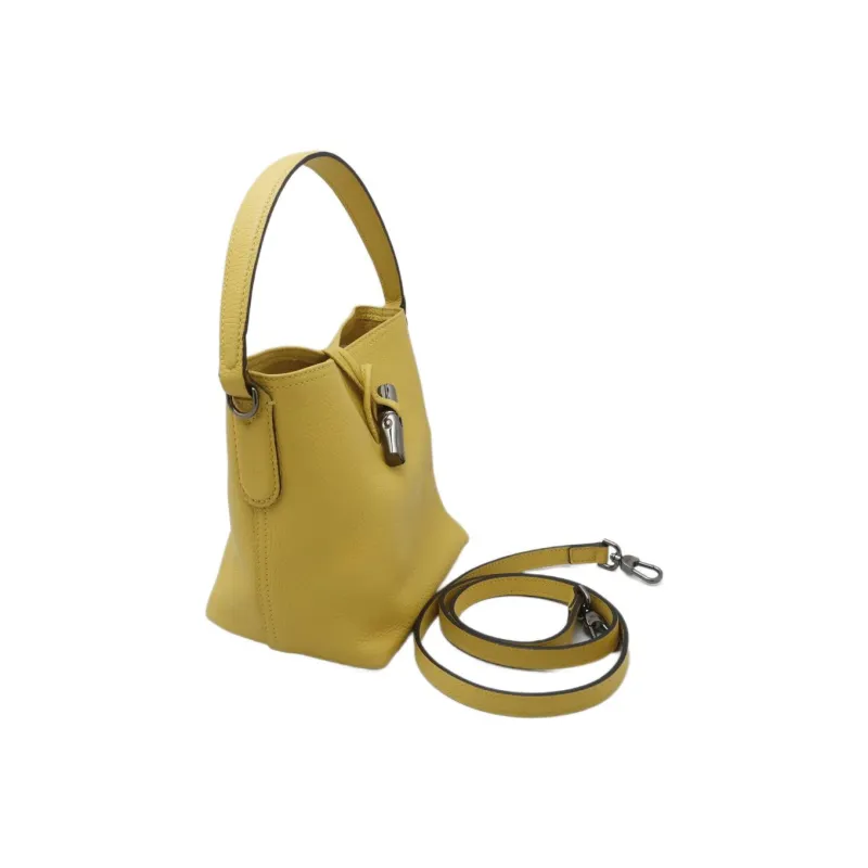LONGCHAMP Roseau Коровья кожа Ведрообразная сумка Сумка через плечо Маленькая Женская Желтая
