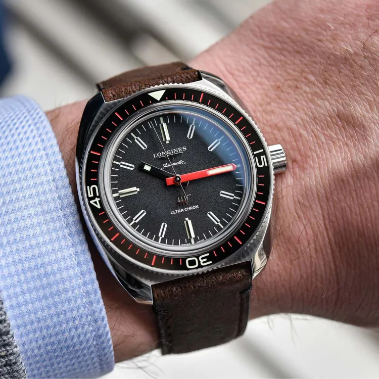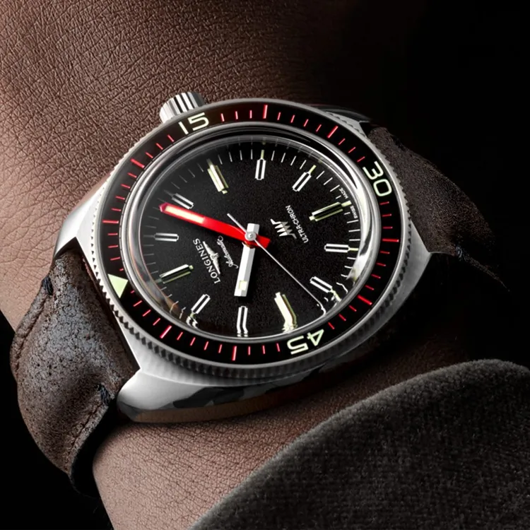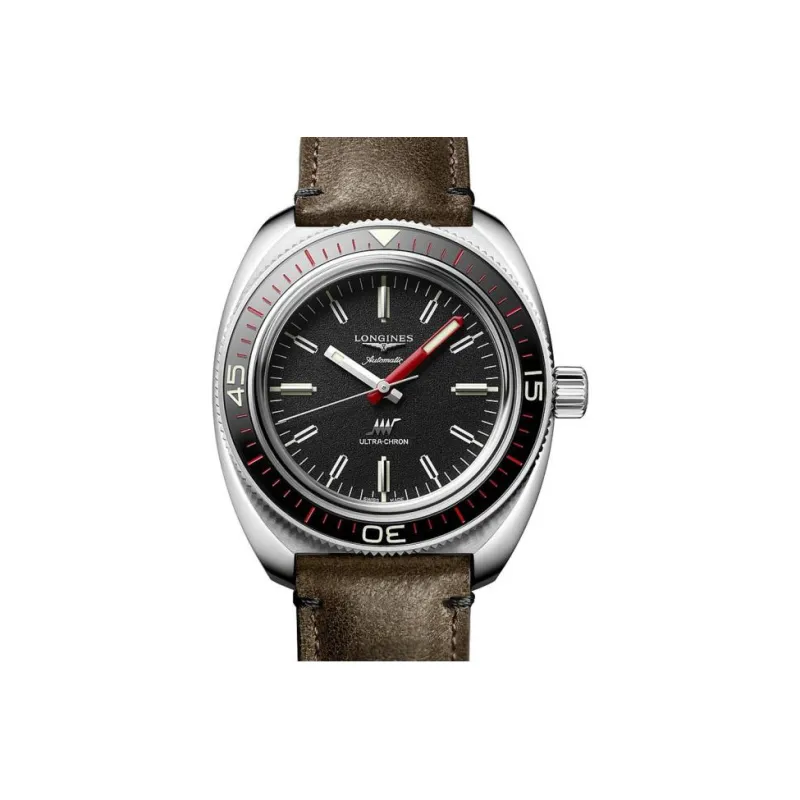 LONGINES Classic Vintage Механический механизм Мужские часы 43 мм Черный циферблат Корпус из нержавеющей стали Ремешок из коровьей кожи