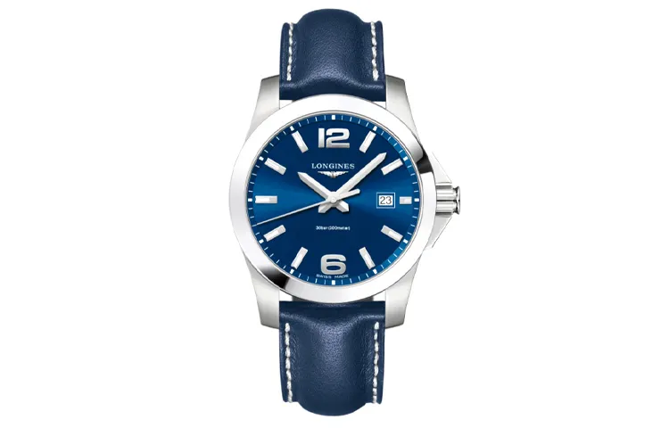 LONGINES Comcast Collection Кварцевый механизм Мужские часы Часы 41 мм Синий циферблат Корпус из нержавеющей стали Кожаный ремешок