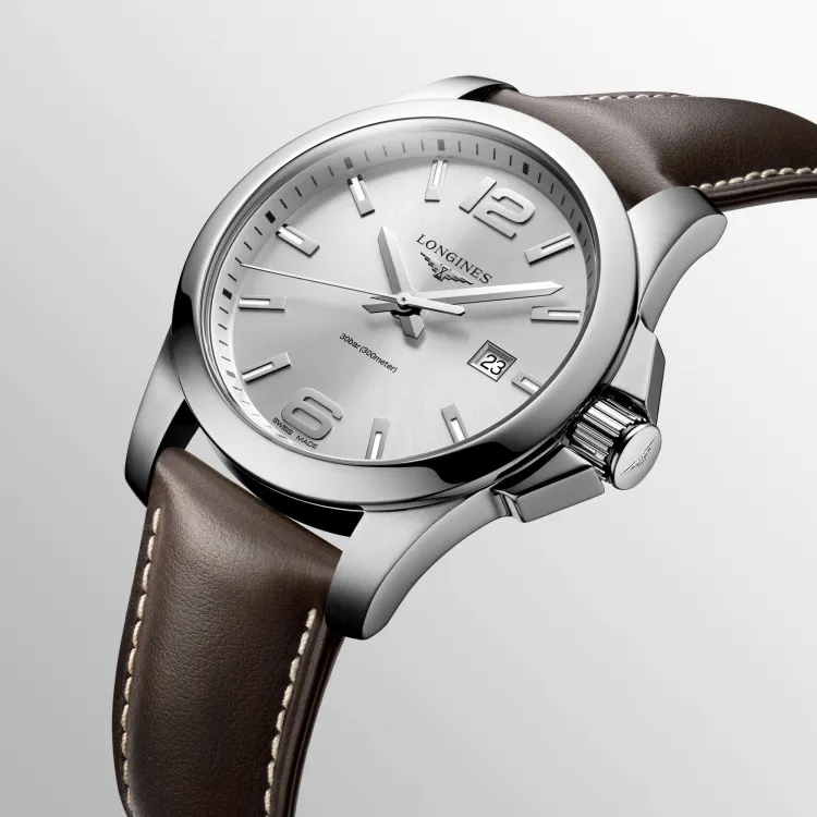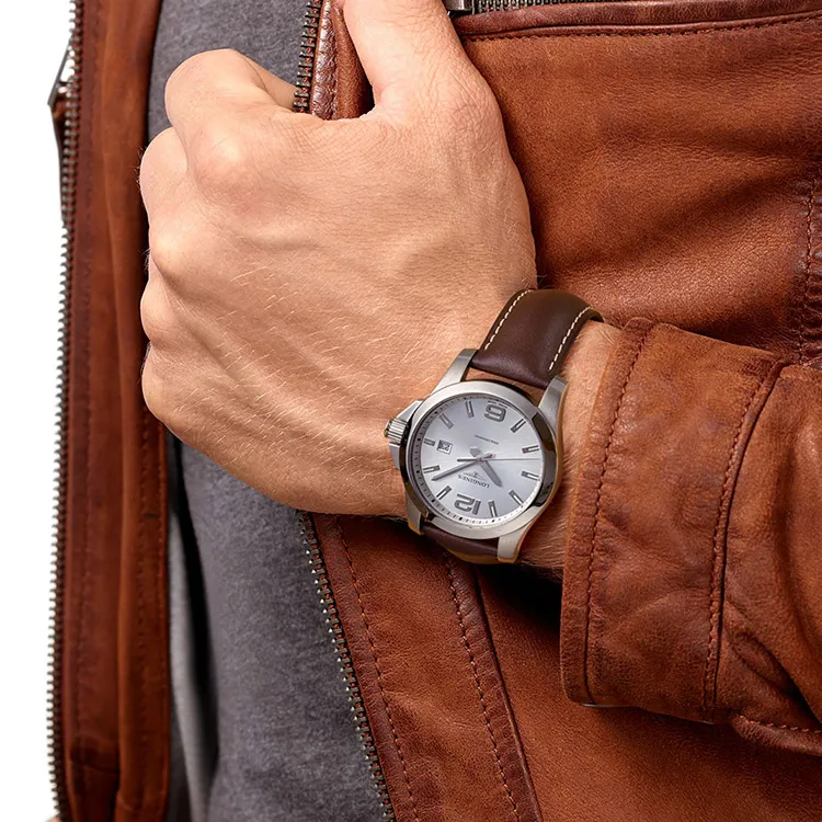 LONGINES Comcast Collection Кварцевый механизм Мужские часы Циферблат 43*22 мм Серебристый корпус Нержавеющая сталь Кожаный ремешок