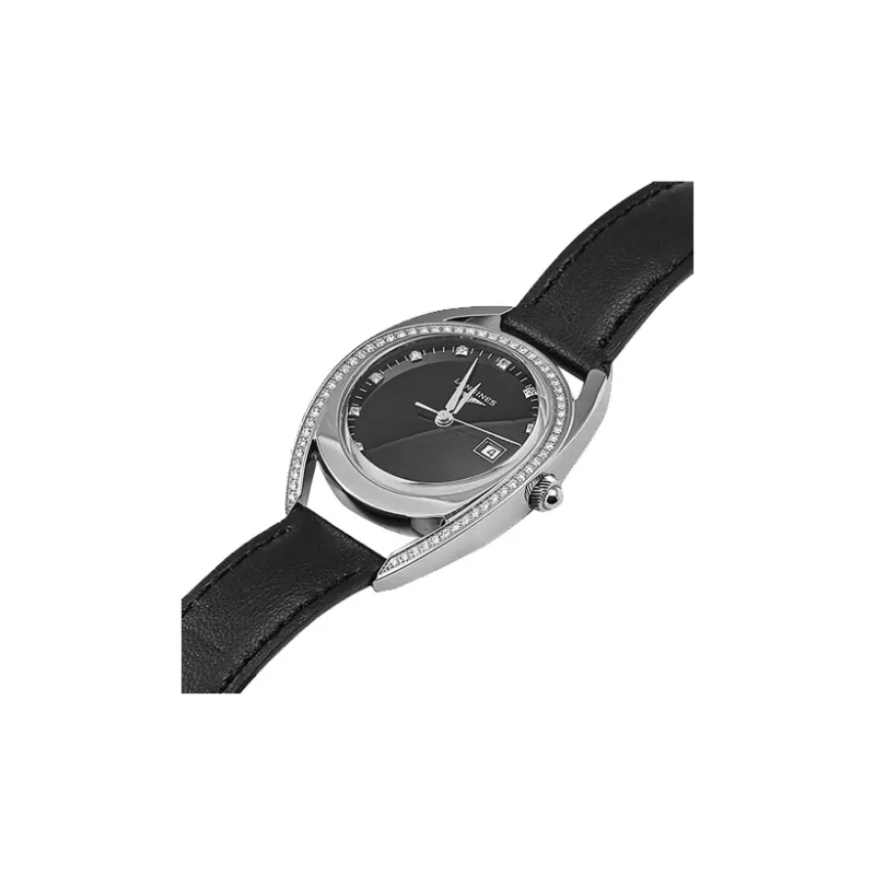 LONGINES Rider Collection Кварцевый механизм Женские часы 30MM Черный циферблат Корпус из нержавеющей стали Кожаный ремешок