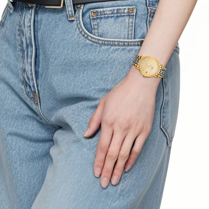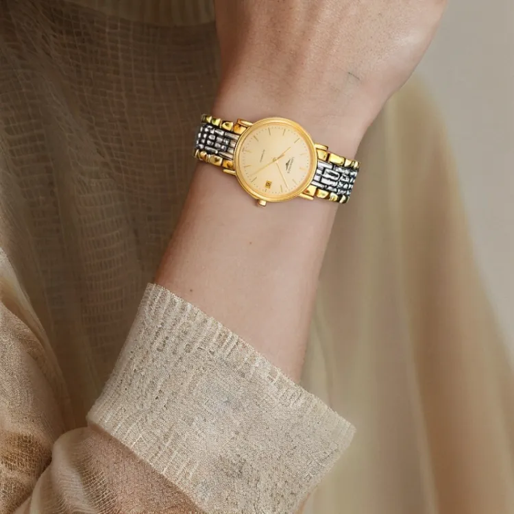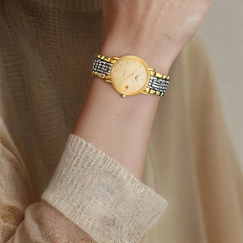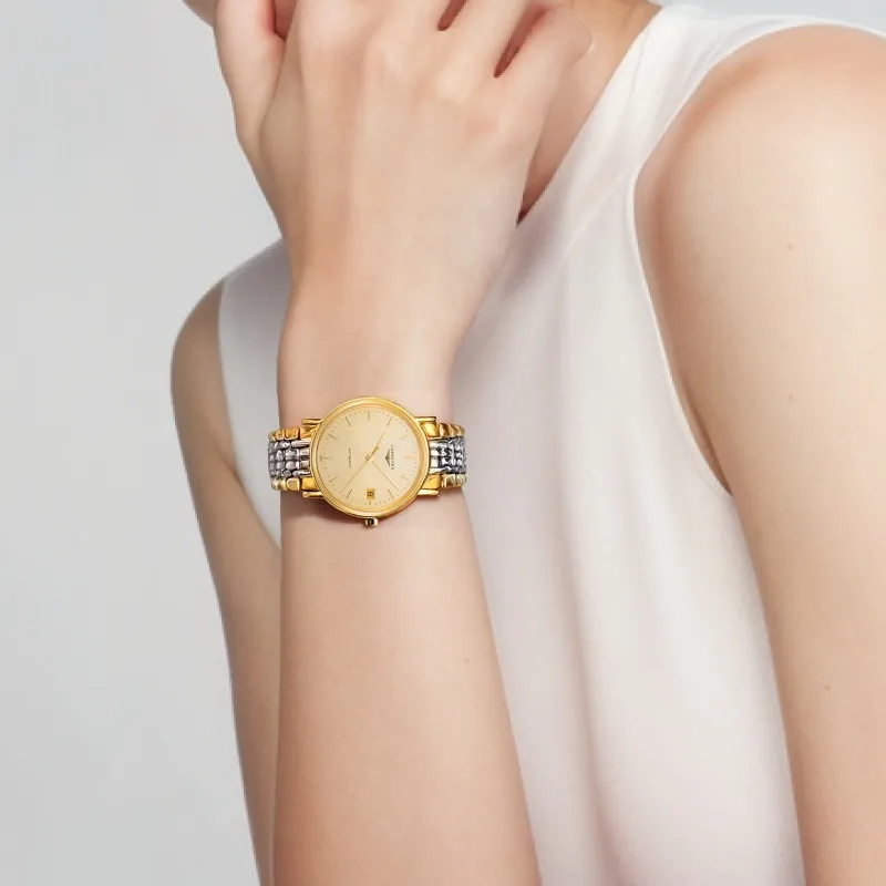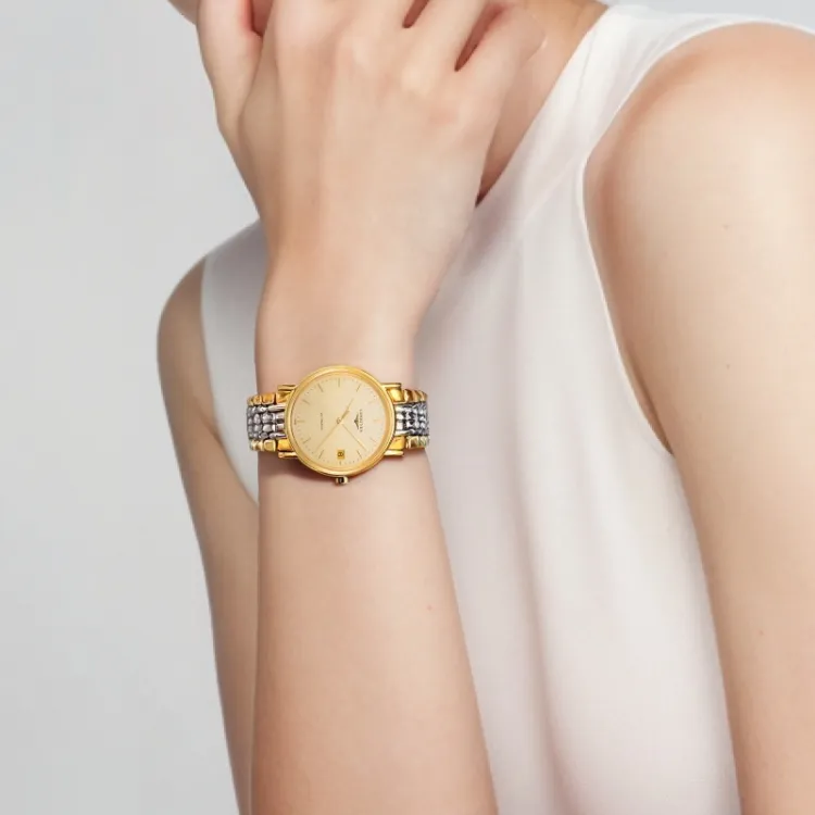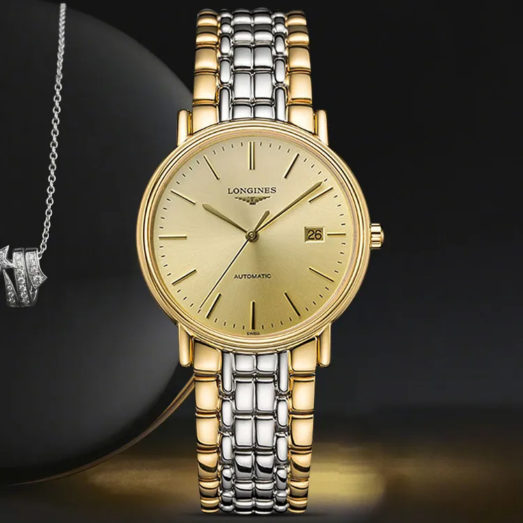 LONGINES Fashion Collection Автоматический Механический Механизм Унисекс Часы 34,5мм+25,5мм Золотой Циферблат Корпус из Нержавеющей Стали
