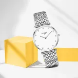 LONGINES Jialan Collection Кварцевый механизм Мужские часы Циферблат 37 мм Белый корпус из нержавеющей стали