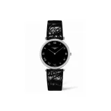LONGINES Jialan Collection Кварцевый механизм Женские часы 33 мм Черный циферблат Корпус из нержавеющей стали Кожаный ремешок