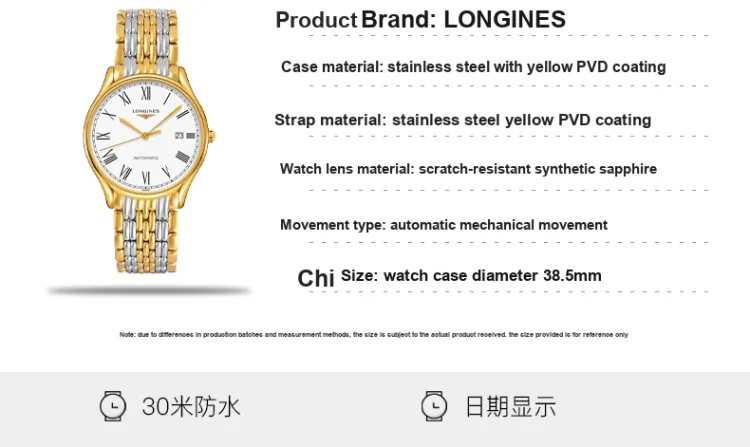 LONGINES Автоматический Механический Механизм Мужские Часы Lvya Collection 38,5 мм Белые