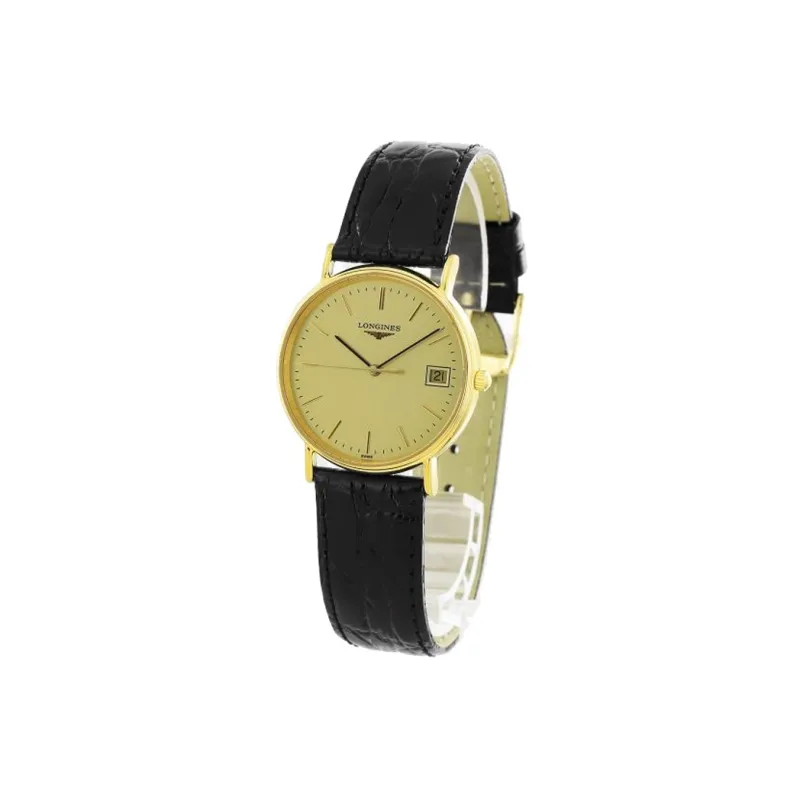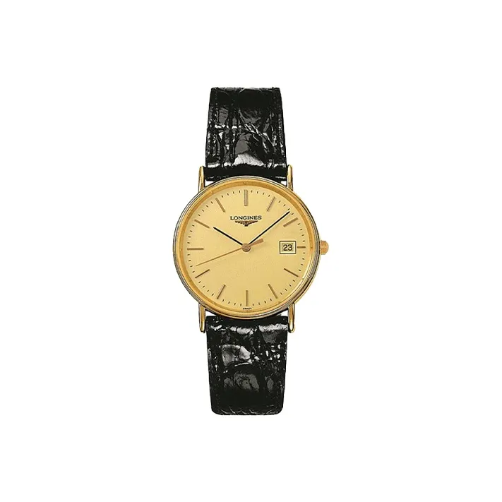 LONGINES Magnificent Collection Кварцевый механизм Мужские часы 33 мм Золотой циферблат Нержавеющая сталь Корпус Натуральная кожа Ремешок
