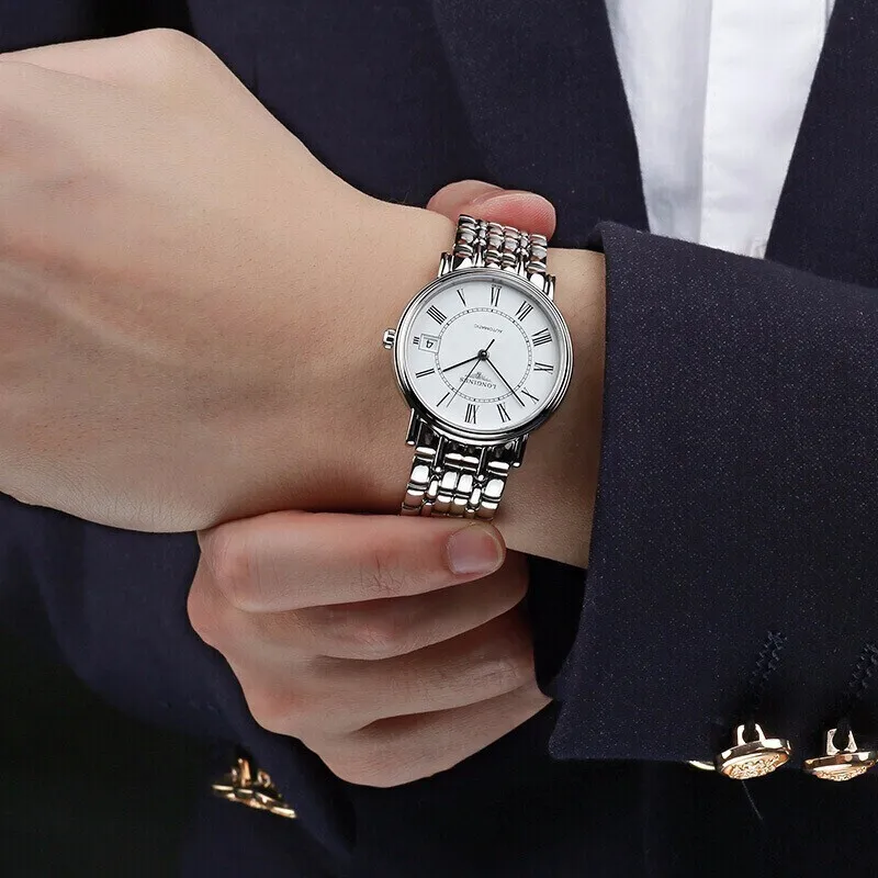 LONGINES Magnificent Collection Кварцевый механизм Мужские часы Циферблат 33 мм Белый корпус из нержавеющей стали