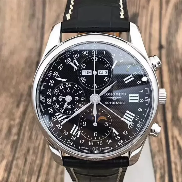 LONGINES Master Collection Механический механизм Мужские часы Черный циферблат Корпус из нержавеющей стали Ремешок из натуральной кожи