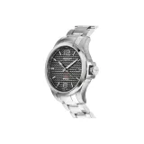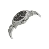 Серебряный ремешок, черный циферблат