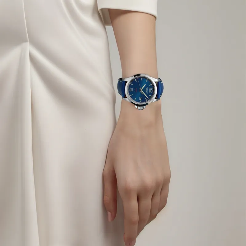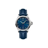 LONGINES Quartz Механизм Женские часы 43 мм Синий циферблат Корпус из нержавеющей стали Кожаный ремешок