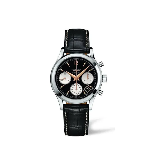 LONGINES Soimia Collection Автоматический Механический Механизм Мужские Часы 39 мм Черный Циферблат Корпус из Нержавеющей Стали Кожаный Ремешок