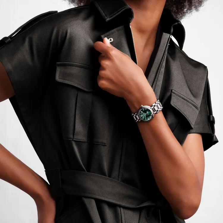 LONGINES Heart Moon Collection Кварцевый механизм Женские часы Циферблат 30,5 мм Зеленый корпус из нержавеющей стали