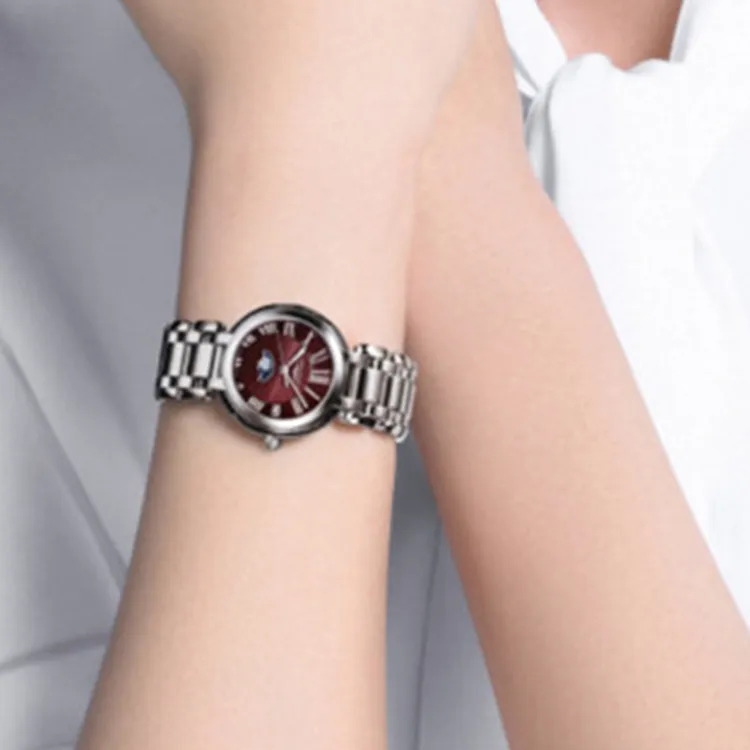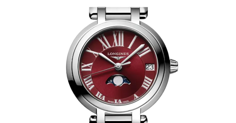 LONGINES Heart Moon Collection Кварцевый механизм Женские часы 30,5 мм Красный циферблат
