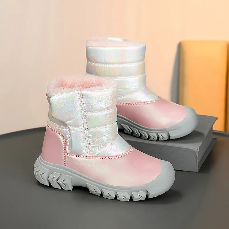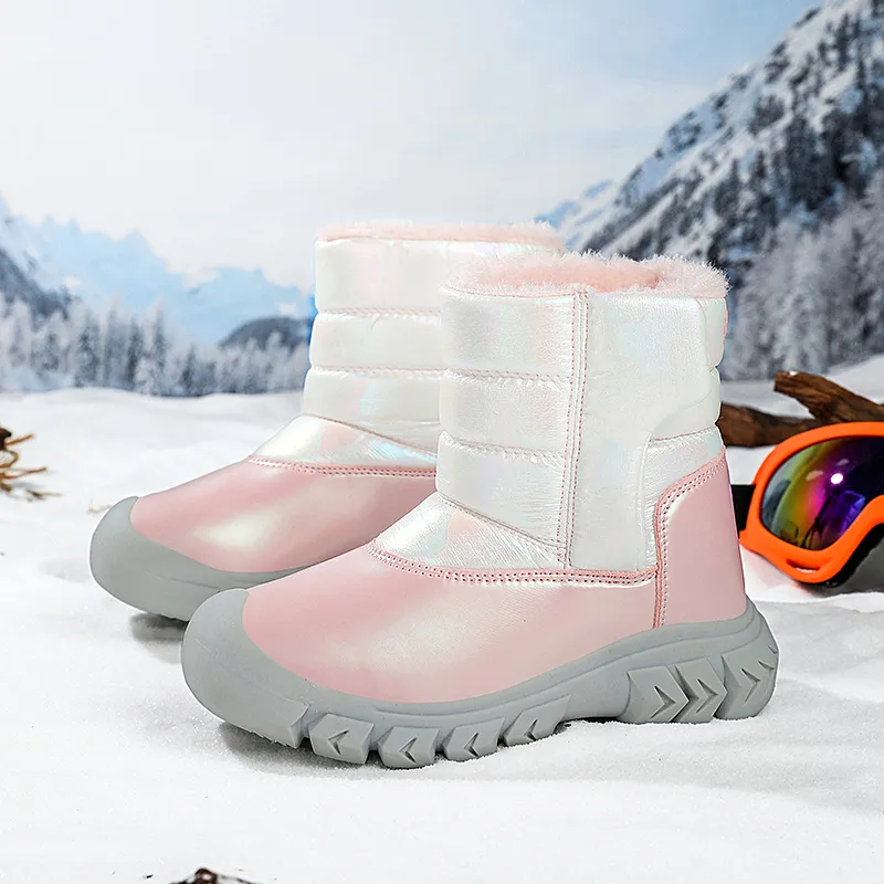 LONGZHIWU Детские зимние сапоги MID Топ Белый Розовый KIDS