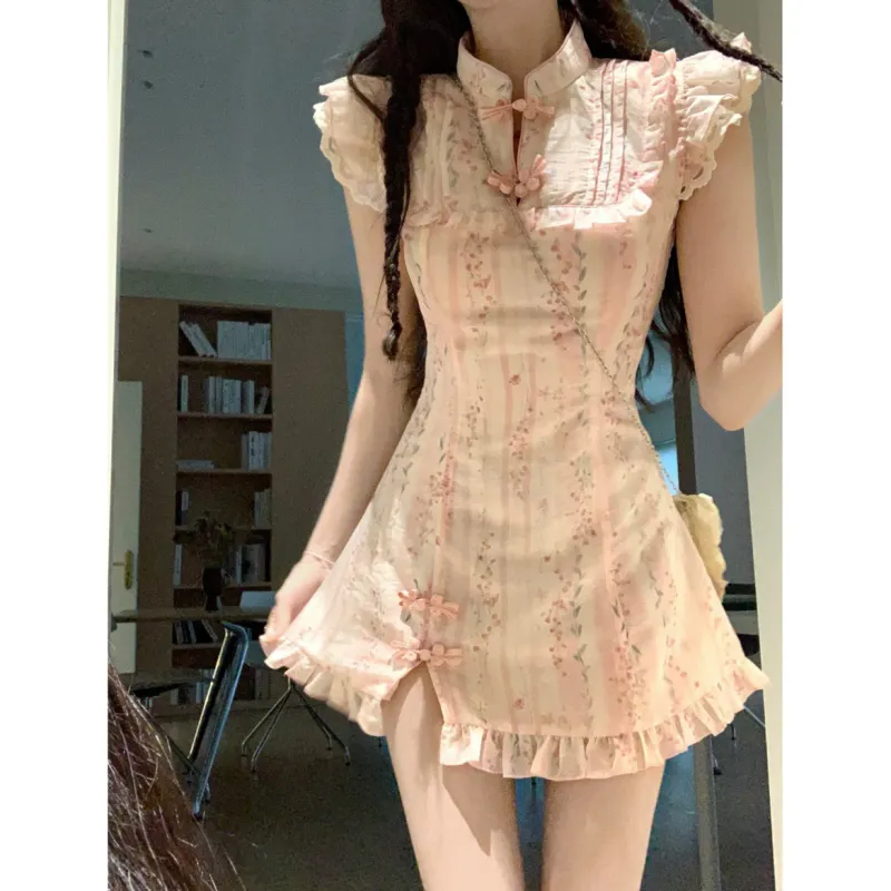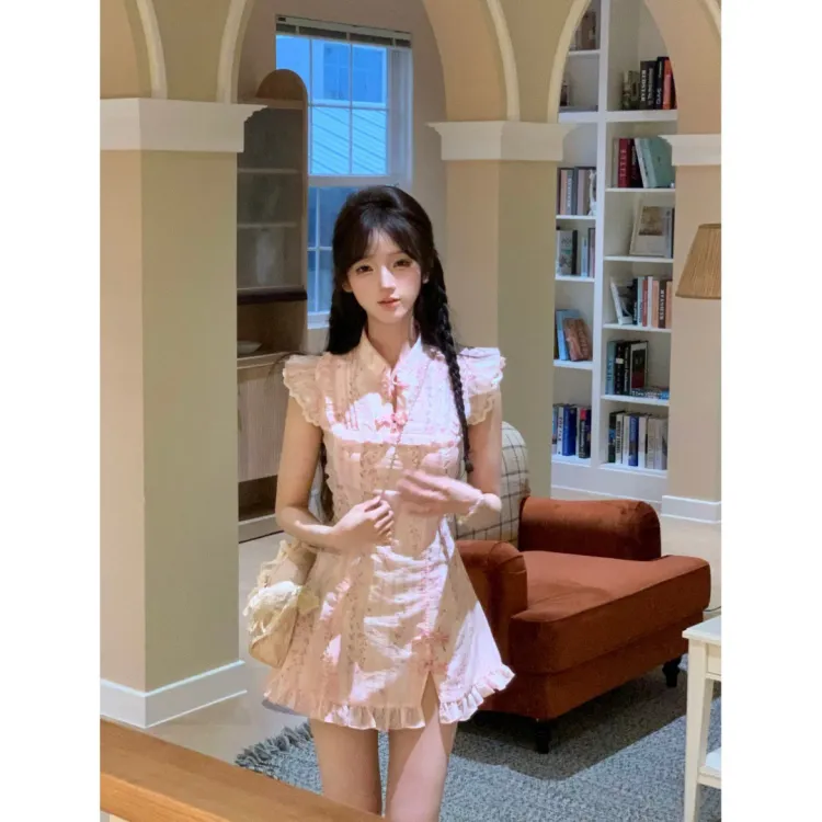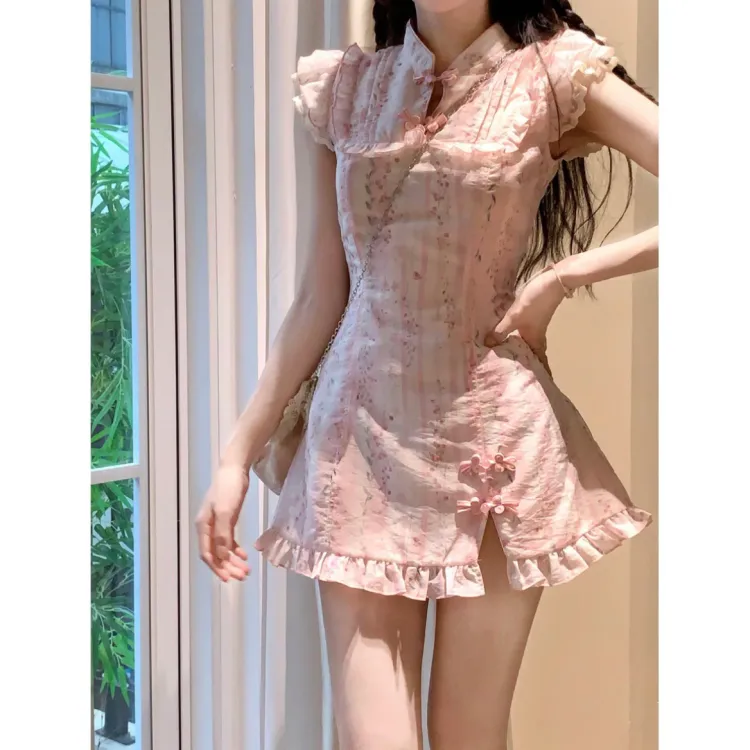Lookinto Короткий рукав Платье Женское Розовое