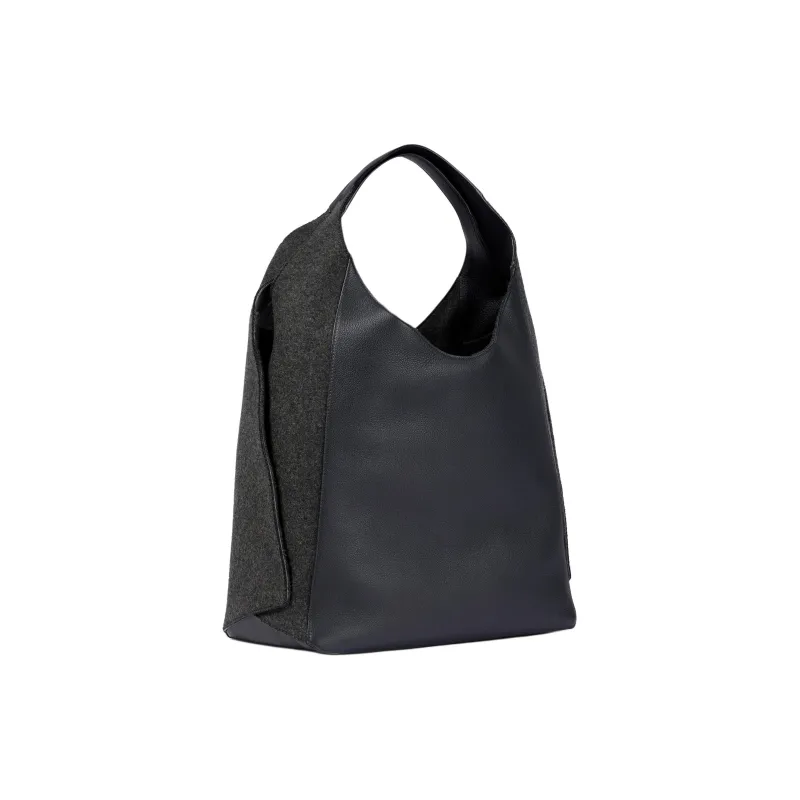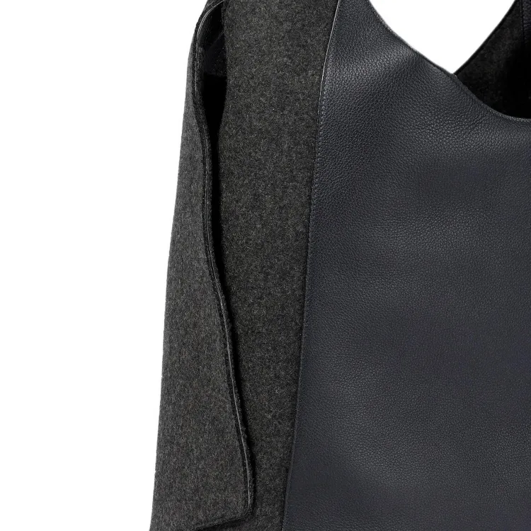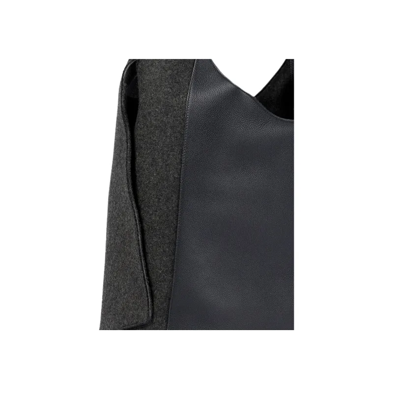 Loro Piana Телячья кожа с кашемирным войлом сумка на плечо большая женская черная