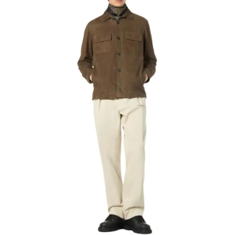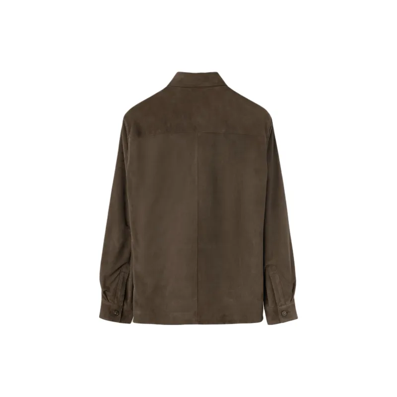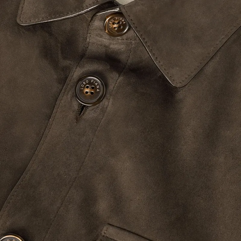 Loro Piana FW24 Кожа Куртка Мужская Угольный Зеленый
