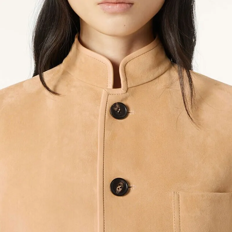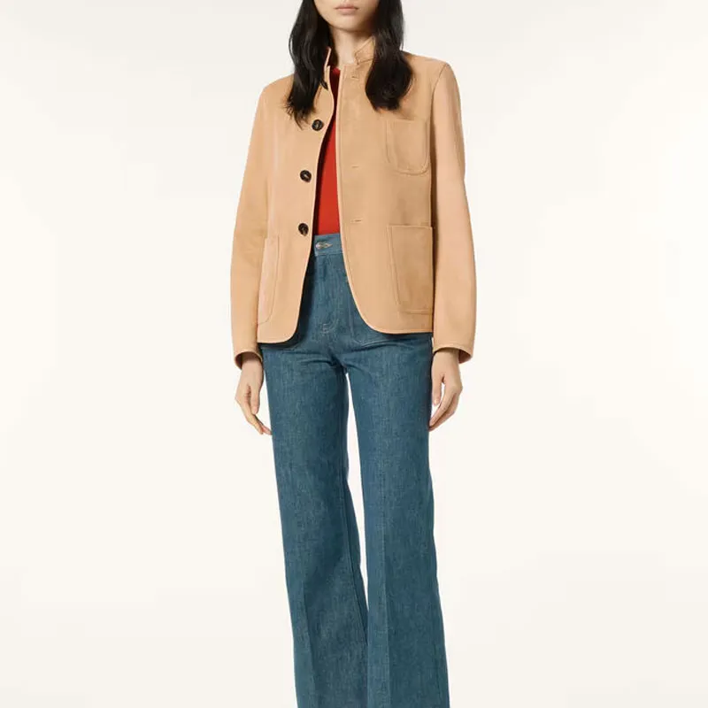 Loro Piana кожаная куртка женская цвет хаки