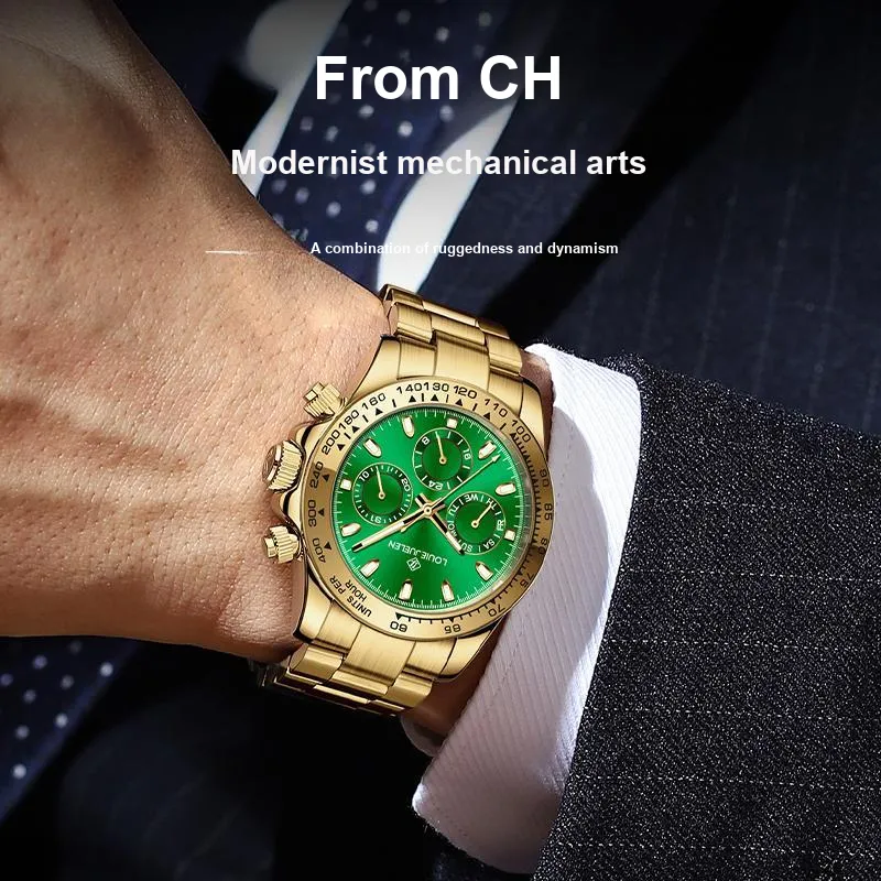 LOUIE JUELEN Ditan Collection Автоматический Механический Механизм Стальной Ремешок Часы Мужские Зеленый Циферблат
