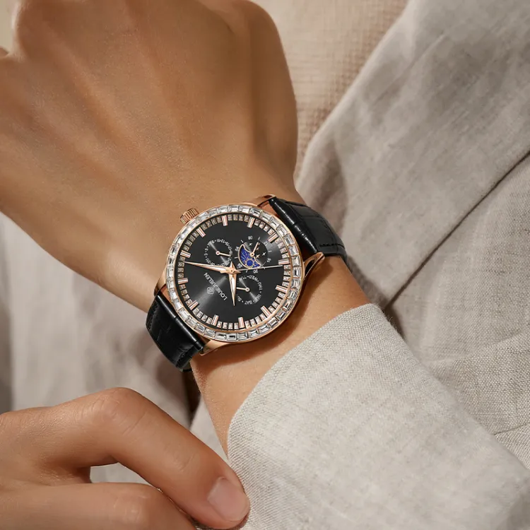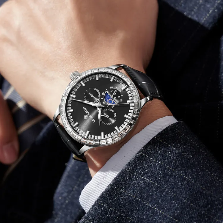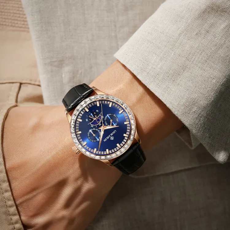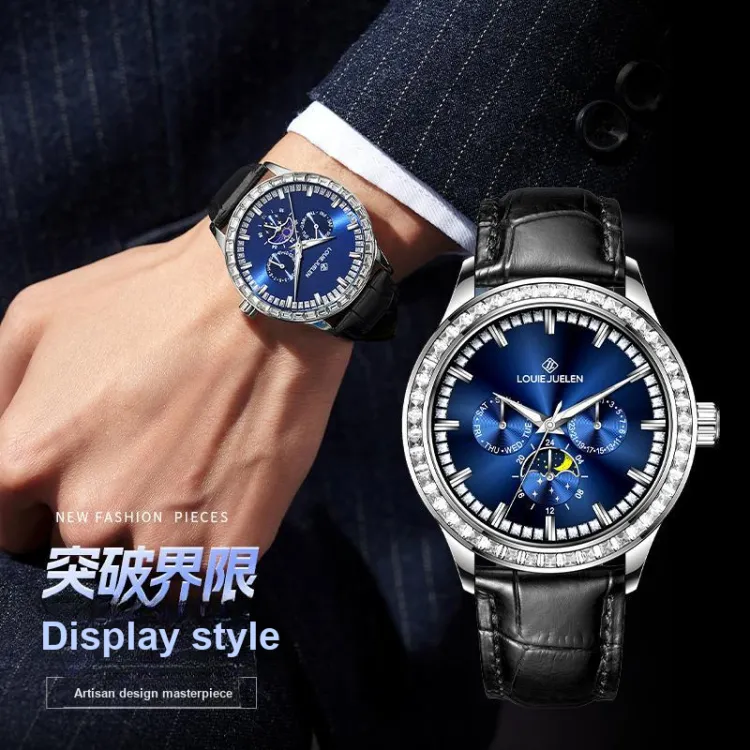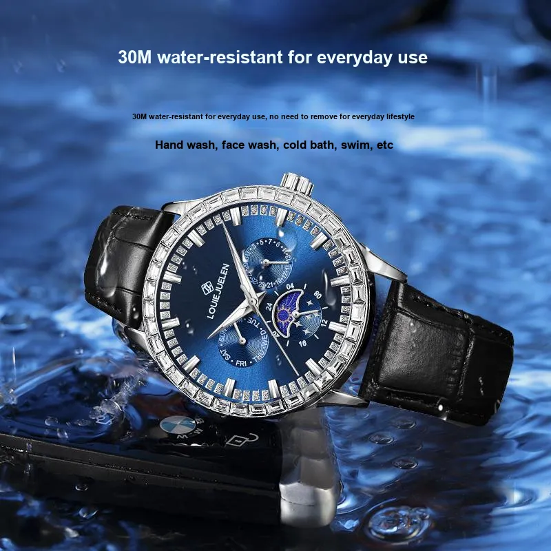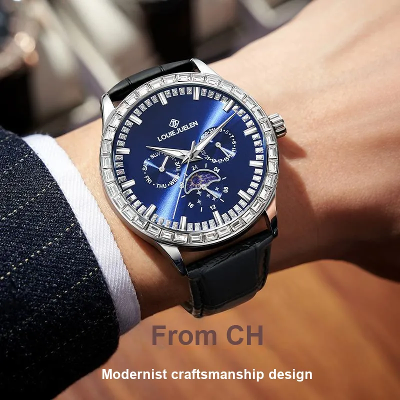 LOUIE JUELEN Кварцевый механизм кожаный ремешок из коровьей кожи часы для мужчин синий циферблат
