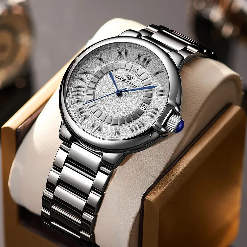 LOUIE JUELEN Кварцевый механизм ремешок из нержавеющей стали унисекс серебристый циферблат