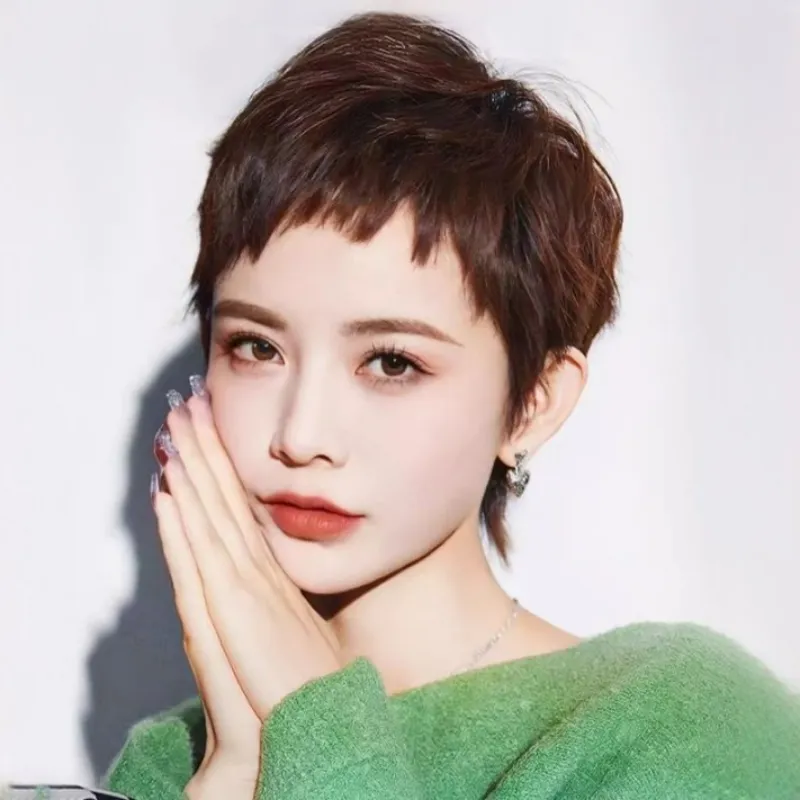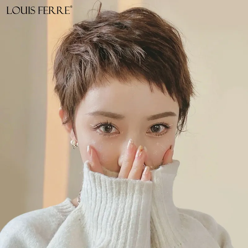 LOUIS FERRE LUIGI Собачья жевательная пряди Женская парик Летняя тонкая короткая стрижка