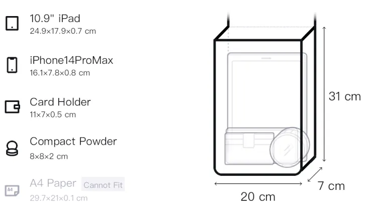 Д20*Ш7*В31см