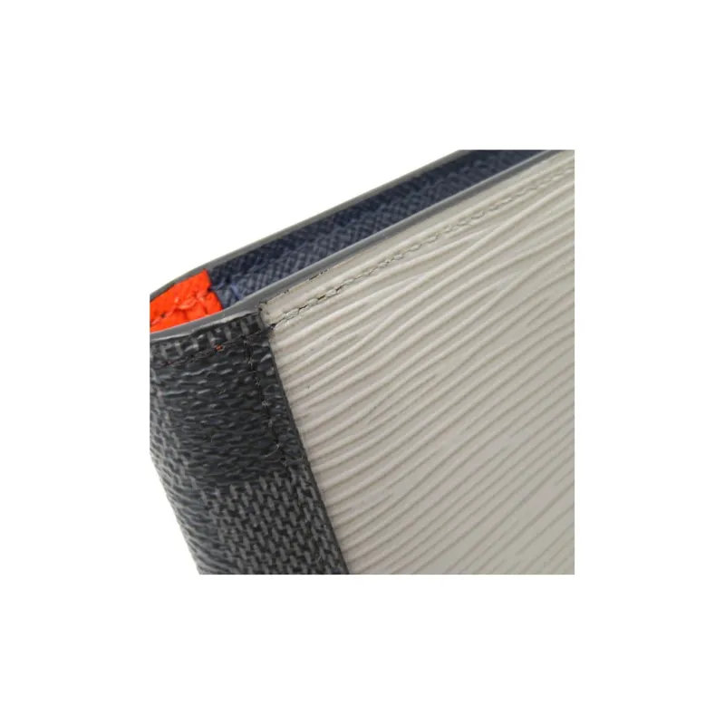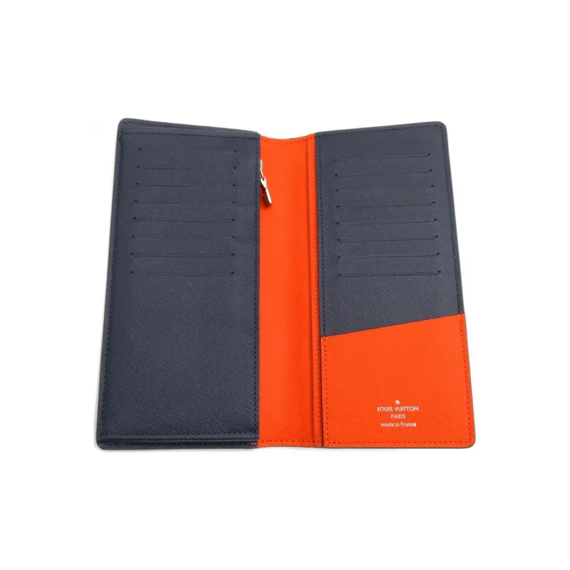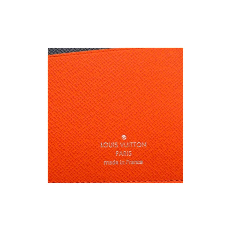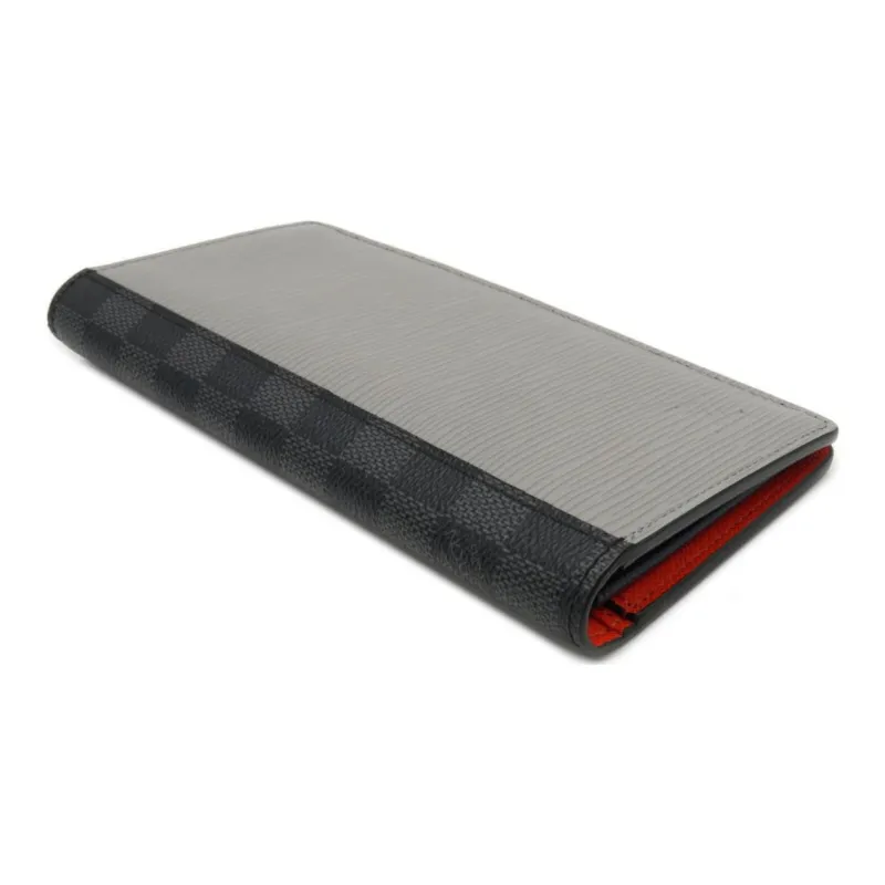 LOUIS VUITTON Brazza Воловья кожа Пэчворк Холст Кошелек Мужской Черный Синий Серый