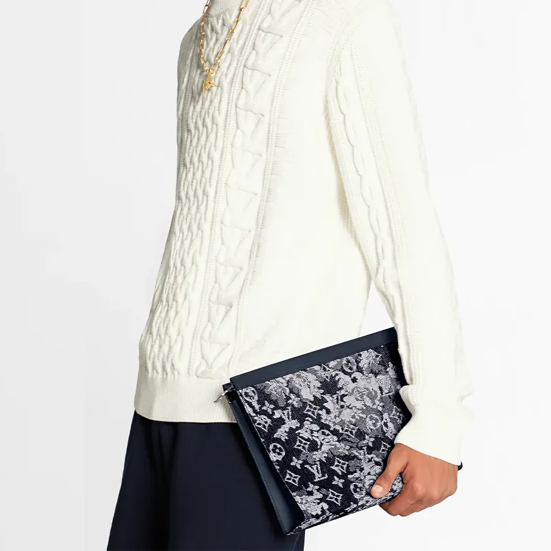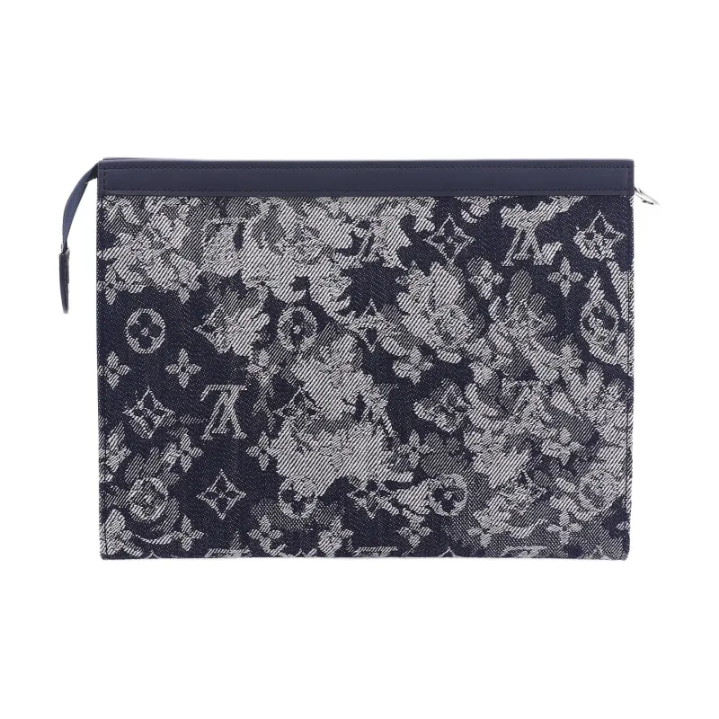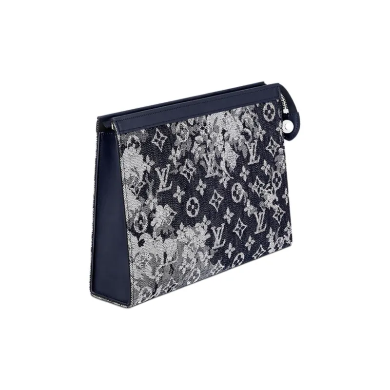 LOUIS VUITTON Холст и кожа Сумка для хранения клатч сумка для туалетных принадлежностей Мужская Синий Серый