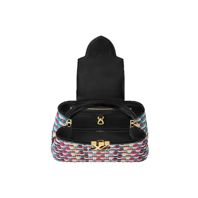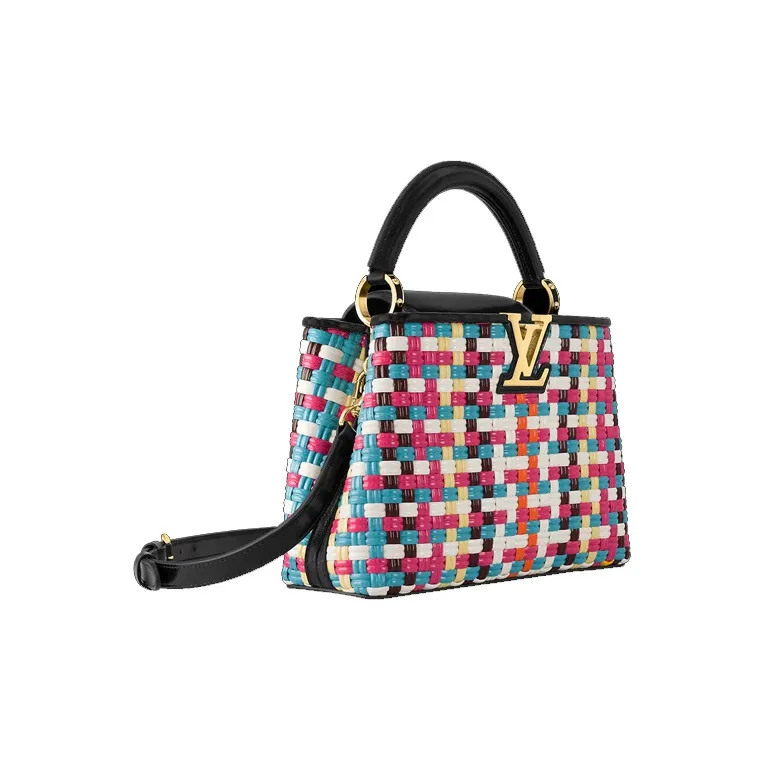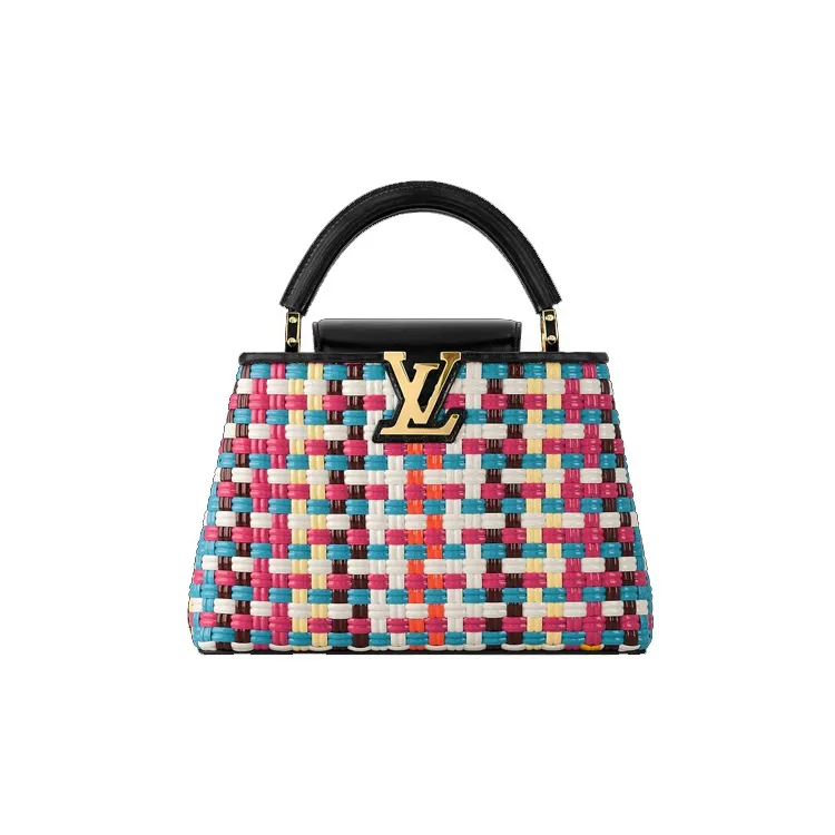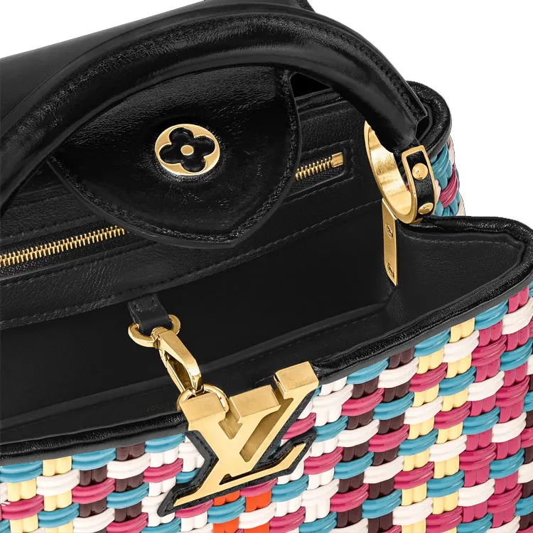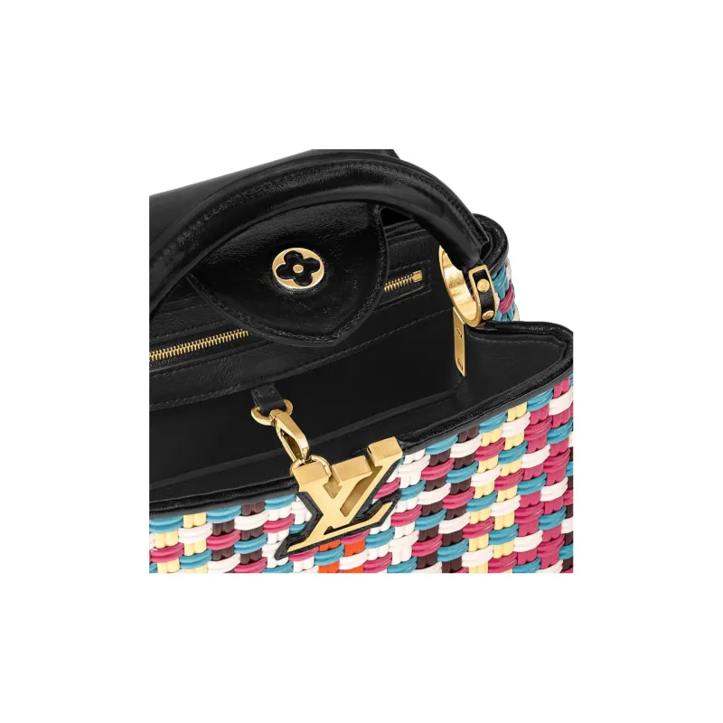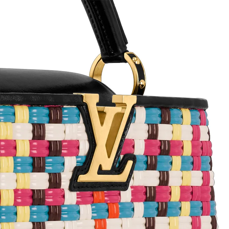 LOUIS VUITTON Capucines Покрытый холст с коровья кожа Capson через плечо сумка маленькая женская многоцветная