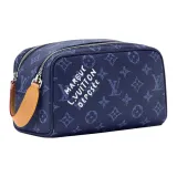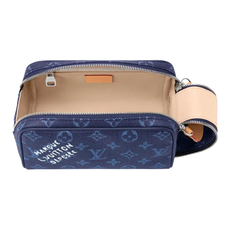 LOUIS VUITTON Dopp Kit Монограмма Heritage Покрытый холст Alliance Туалетная сумка Mini Мужская Океан Синий