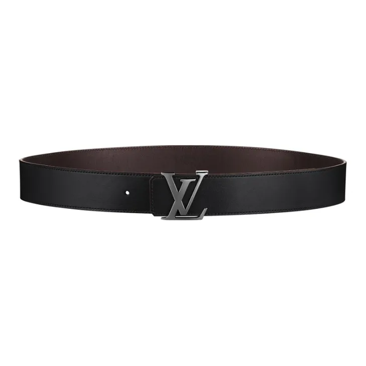 LOUIS VUITTON Двойной ремень с инициалами кожа мужской черный темно-коричневый
