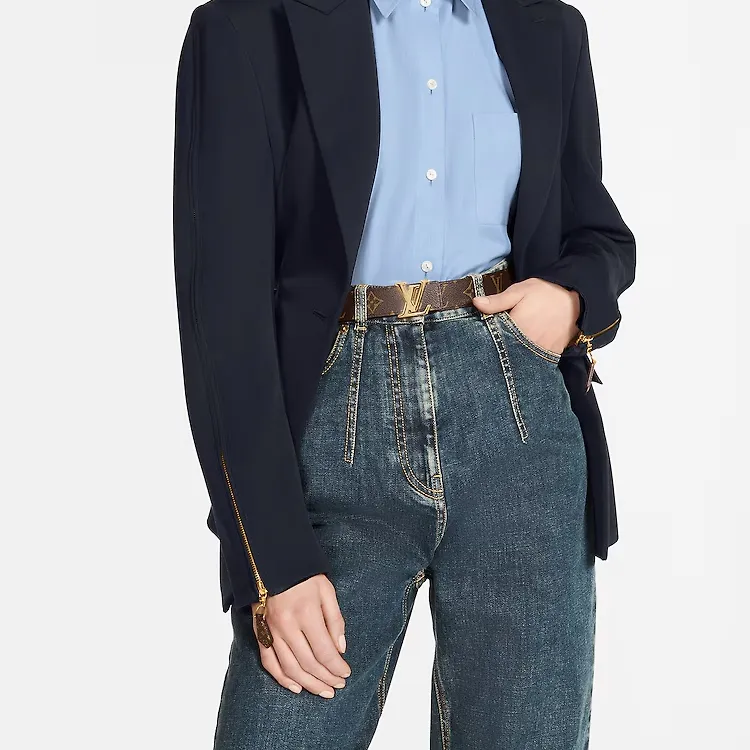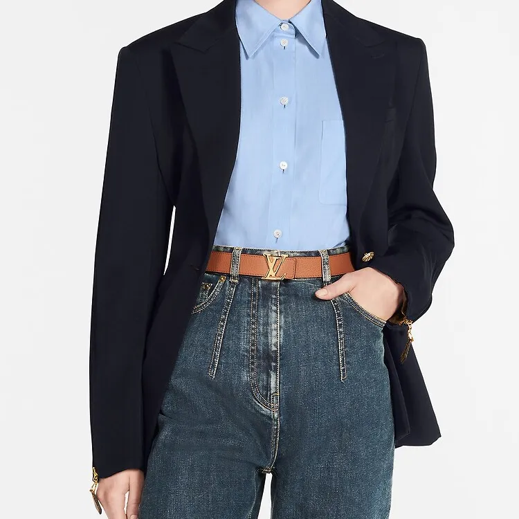 LOUIS VUITTON Логотип Sign Кожаные ремни Женские Коричневый Ширина 3 см