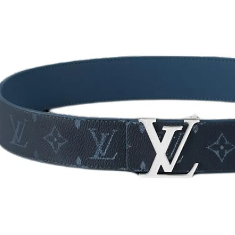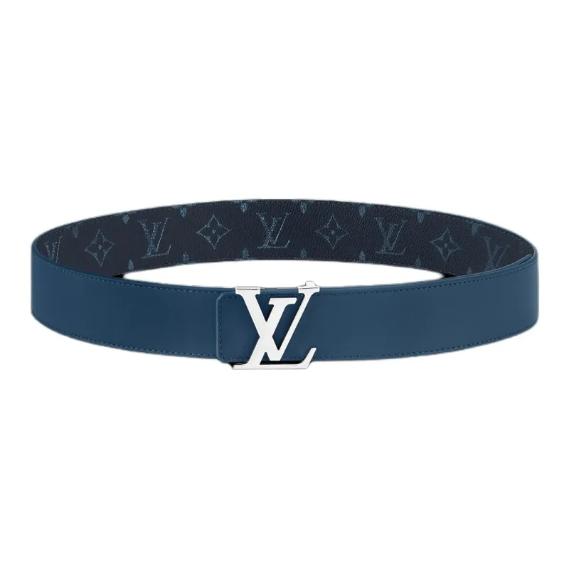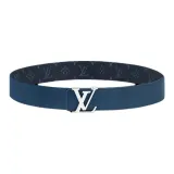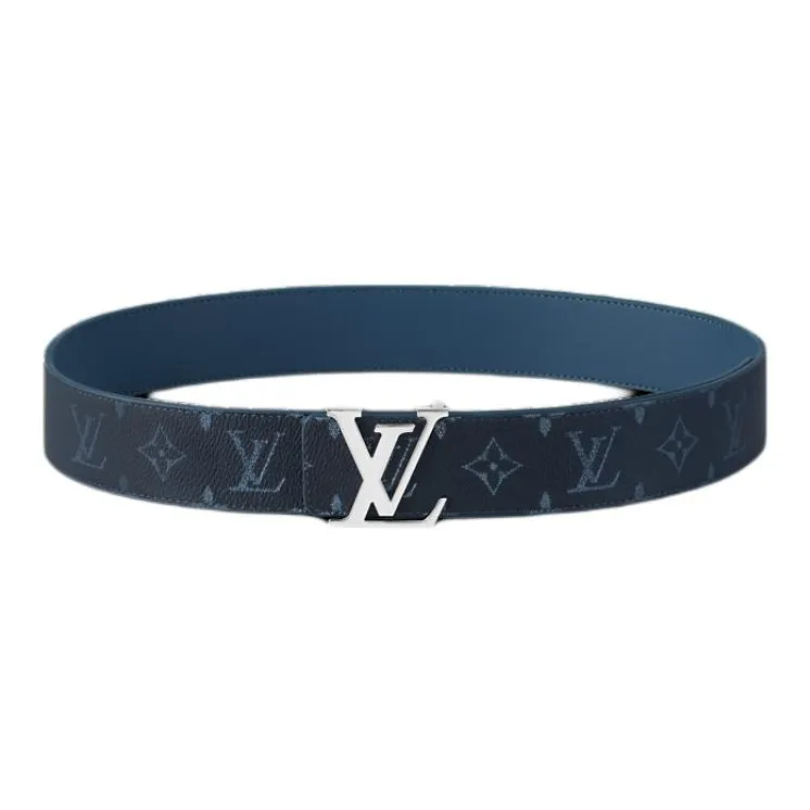 LOUIS VUITTON Кожаные ремни Мужской Синий Серый Ширина 4CM