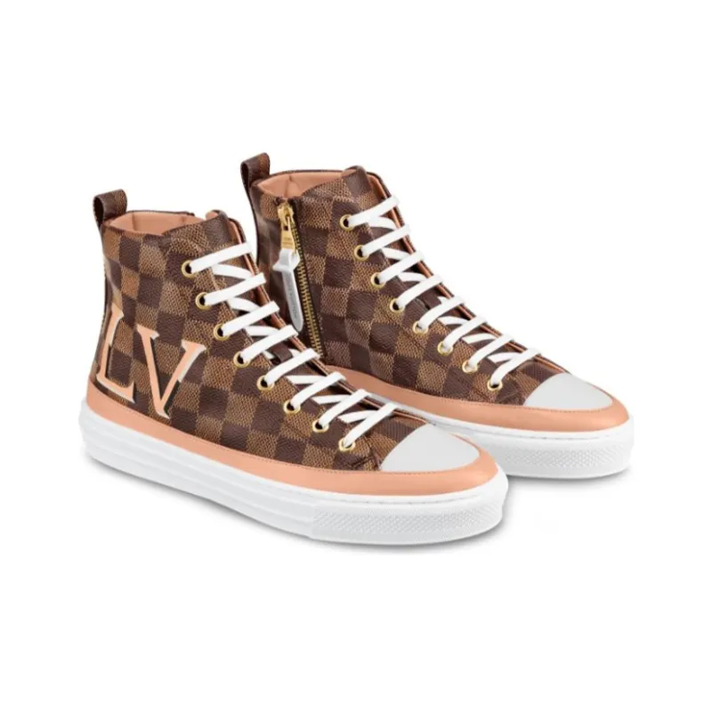 LOUIS VUITTON Stellar Damier Высокие Кроссовки для скейтбординга Женские Коричневые