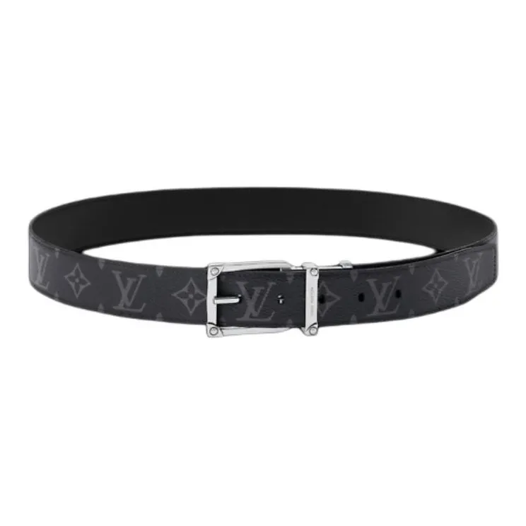 LOUIS VUITTON Монограмма Покрытый холст Кожаные ремни Мужской Черный Ширина корпуса 3,5 см