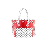 LOUIS VUITTON NEVERFULL Холст и кожа Комбо Сумка Тоут Сумка Сумка для покупок Сумка через плечо Сумка среднего размера Женская Красная