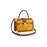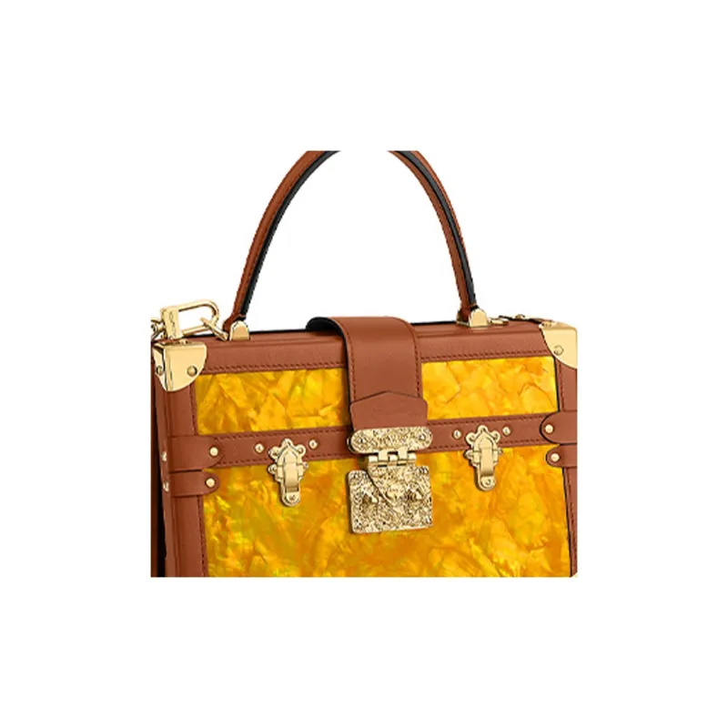 LOUIS VUITTON PETITE MALLE Shell из коровьей кожи отделка твердая коробка ручная сумка через плечо женская коричневый желтый