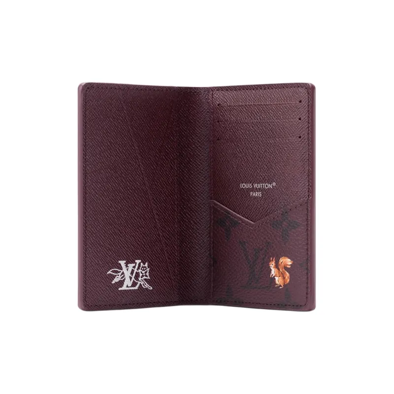 LOUIS VUITTON Pocket Organizer Монограмма Forest Покрытый холст Держатель для карт Мужской Бордовый