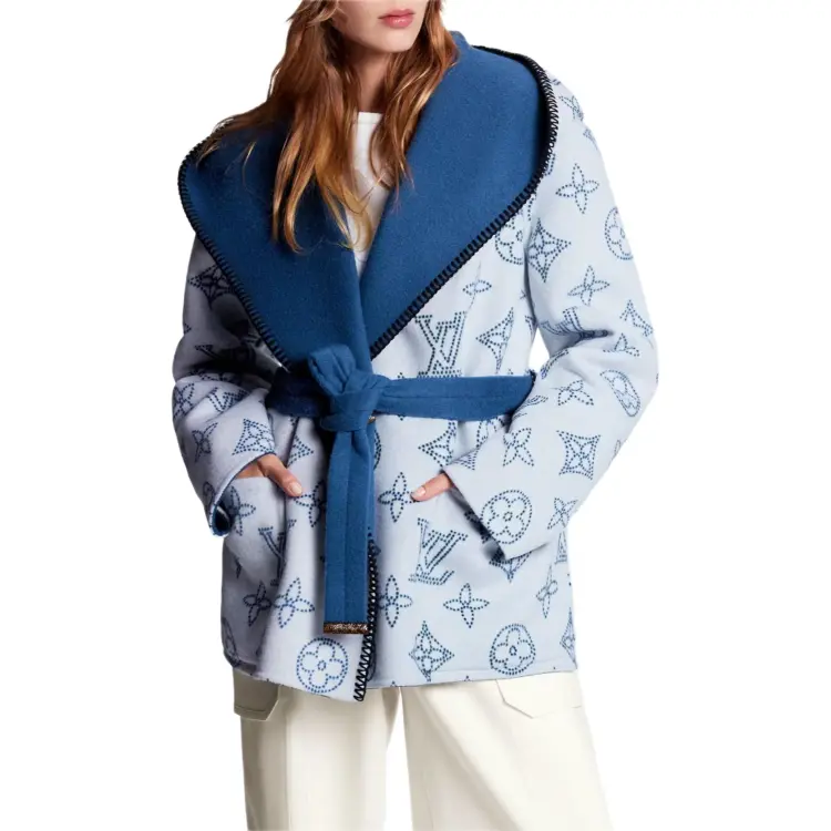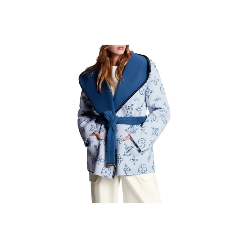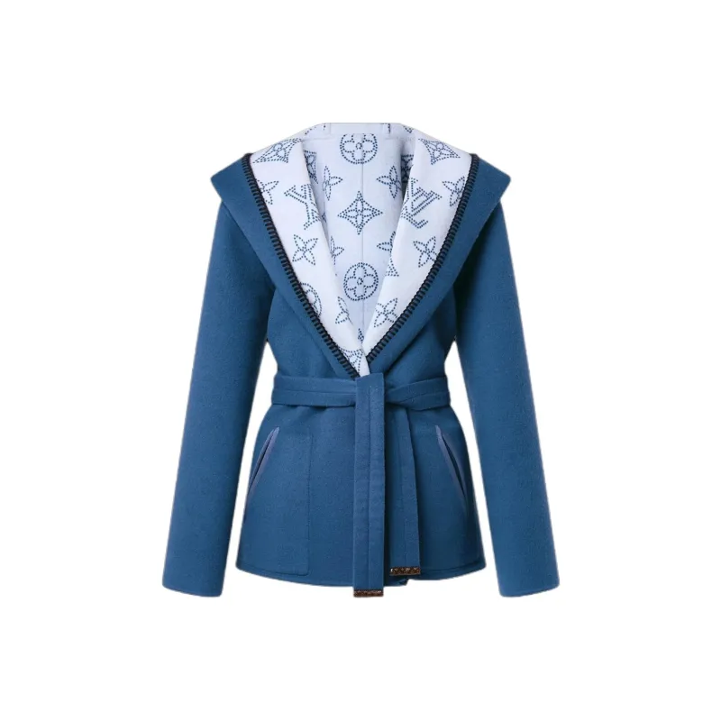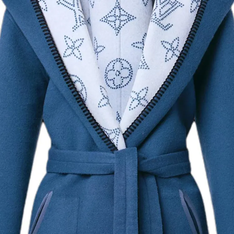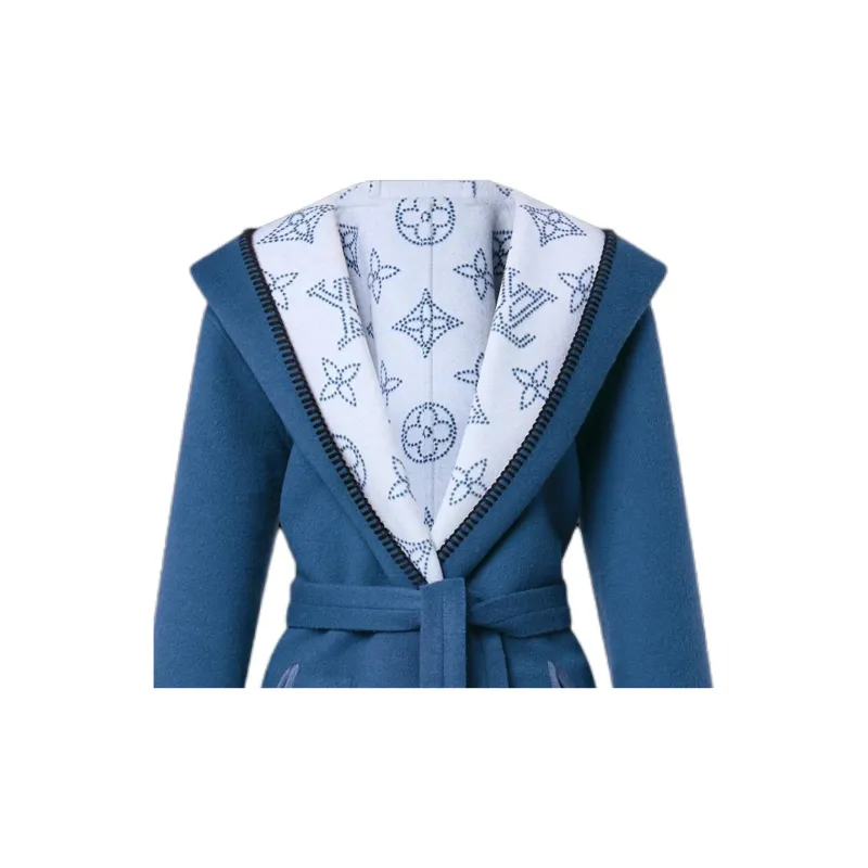 LOUIS VUITTON Двусторонний длинный пальто с капюшоном женское цвет небесно-синий