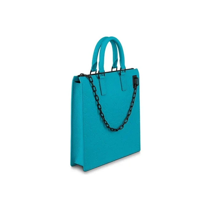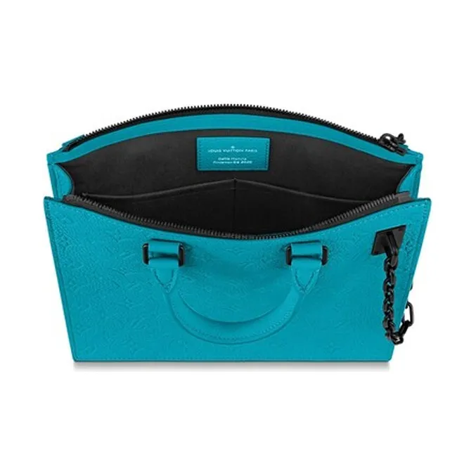 LOUIS VUITTON Sac Plat Коровья кожа Сумка с боковинами-гармошками Курьерская сумка Сумка через плечо Женская Циановый Бирюзовый