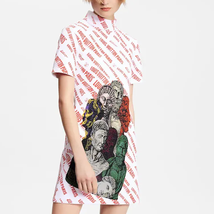 LOUIS VUITTON Короткое платье с короткими рукавами женское белое