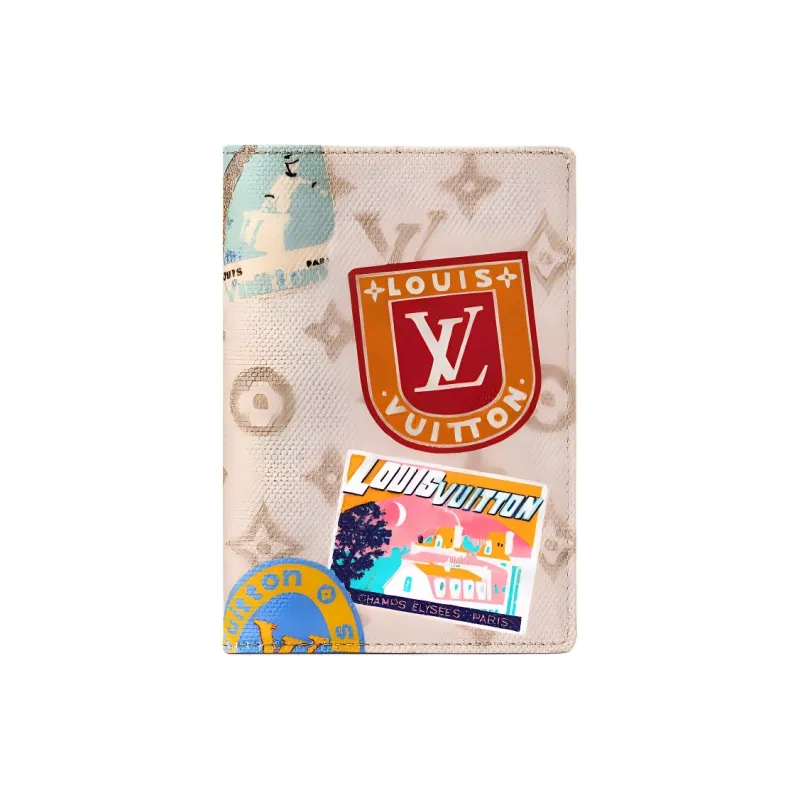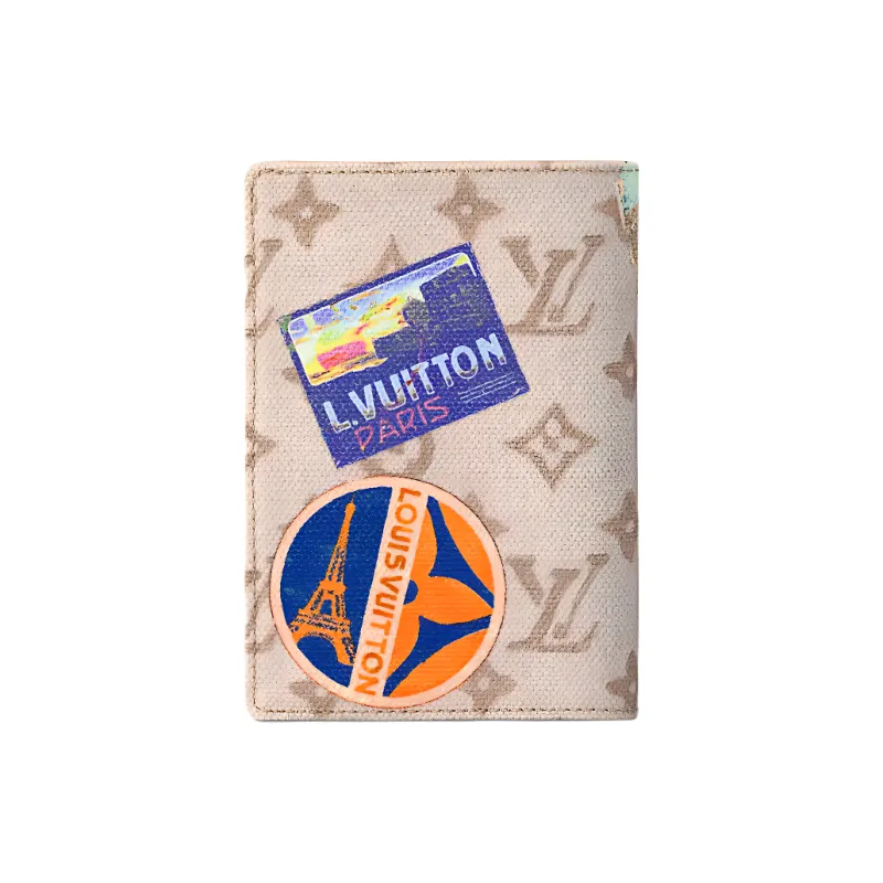 LOUIS VUITTON FLIGHT MODE Монограмма Dune Покрытый холст Держатель для паспорта Унисекс Бежевый
