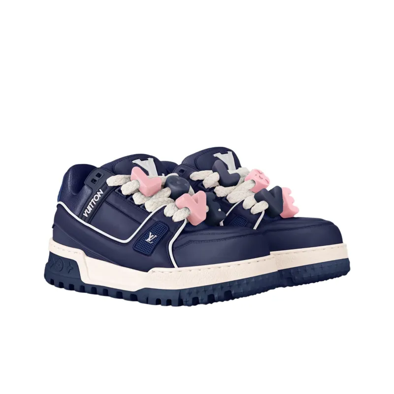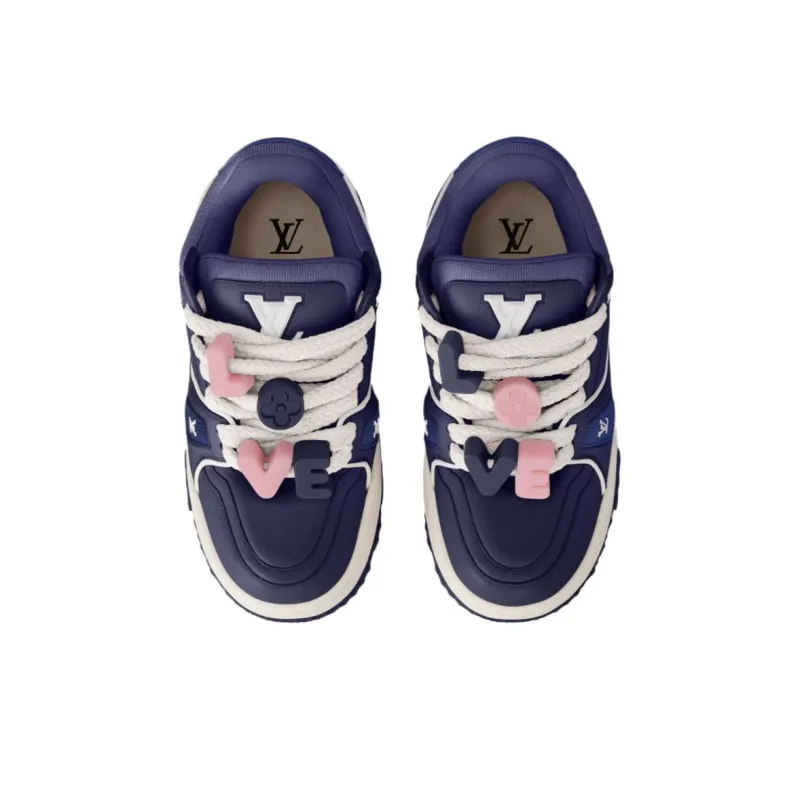LOUIS VUITTON Trainer Maxi Любовь Component Логотип Низкий Топ Повседневная обувь Женская Синяя Лимитированная серия ко Дню Святого Валентина