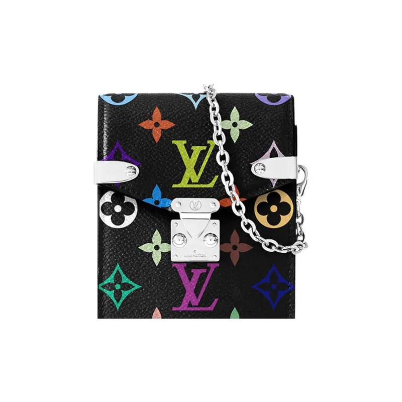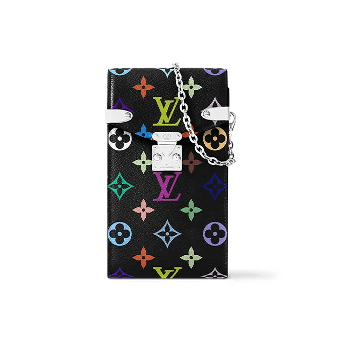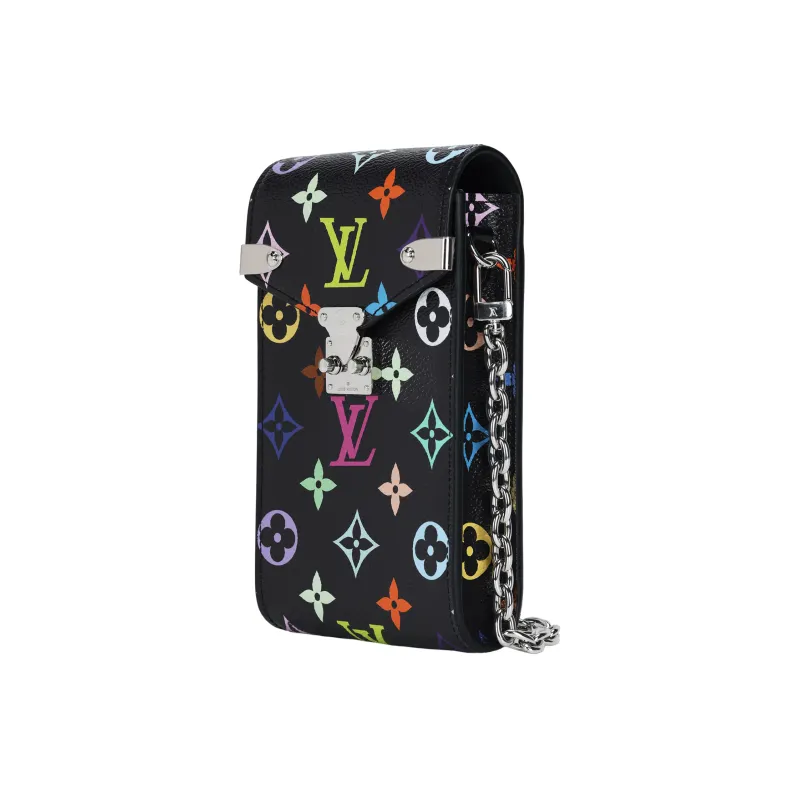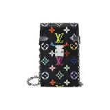 LOUIS VUITTON Takashi Murakami Коллаборация Покрытый холст Одно плечо Через плечо Чехол для телефона Женские Черный
