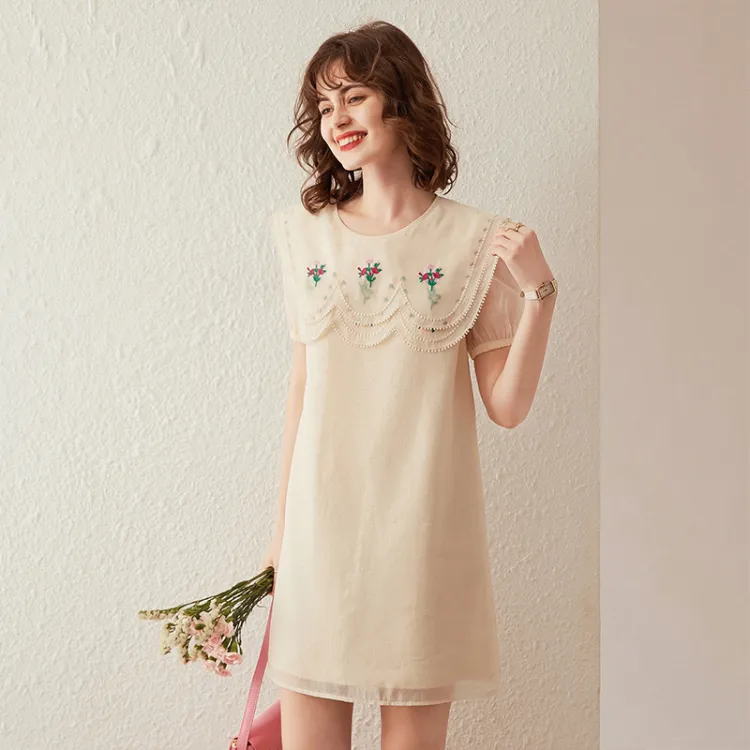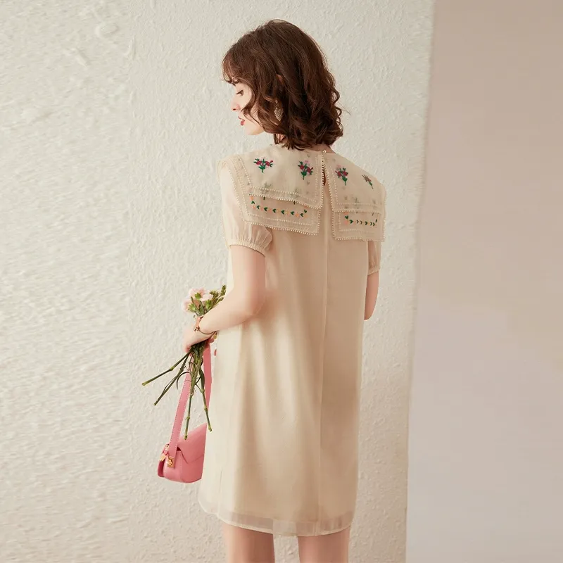 LOUISY AO Короткий рукав Платье Женское Абрикосовое