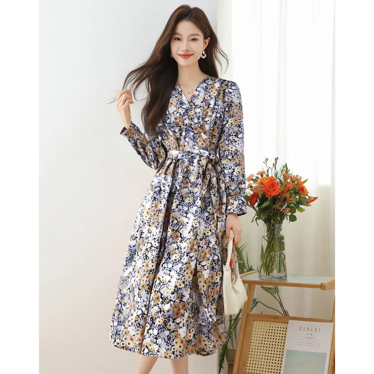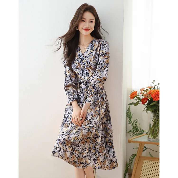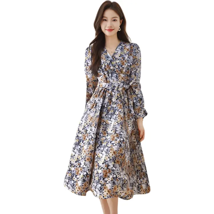 Love Elaine Весенний Осенний Длинный Рукав Платье Женское Многоцветное