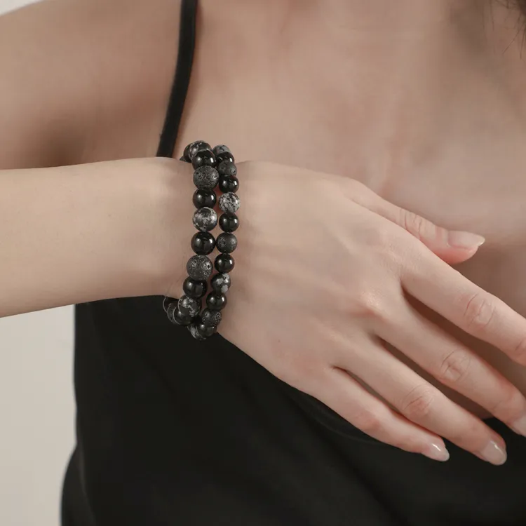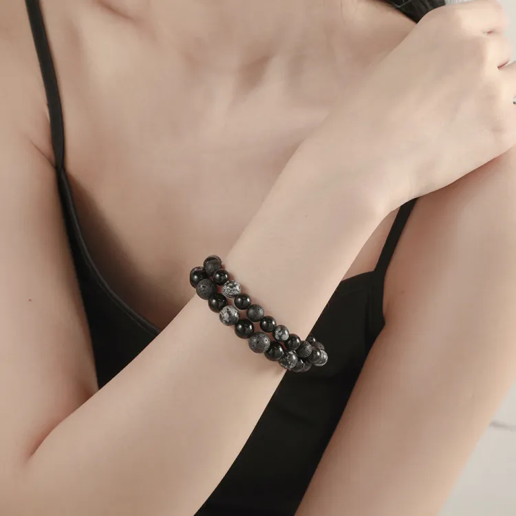 Love Link Вулканический камень Обсидиан Браслеты Унисекс