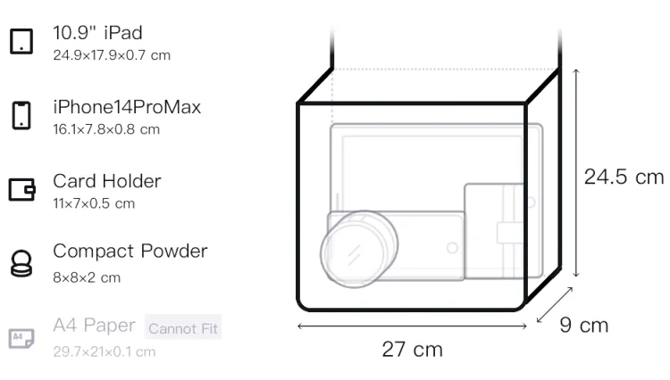 Длина (размер в длину) 27 см, Ширина корпуса 9 см, Длина корпуса 24,5 см